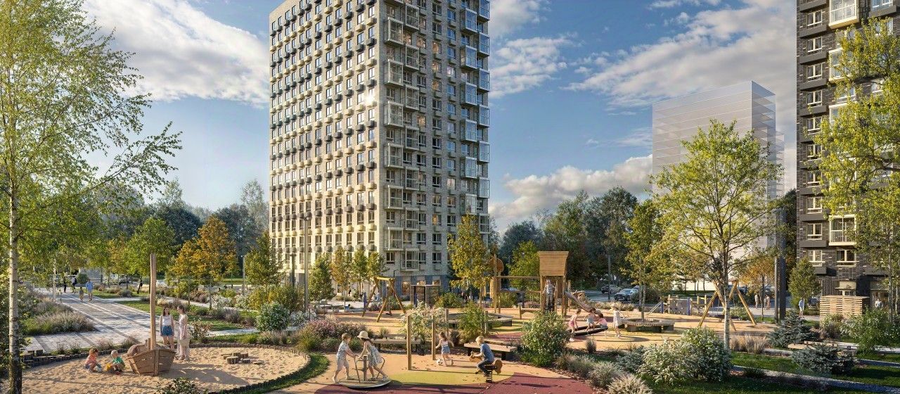 Чтобы жители квартала чувствовали простор и получали больше солнечного света, мы построим дома разной высоты. Во дворах появятся уютные парки с детскими площадками и местами для отдыха - здесь можно поболтать с соседями, почитать в тени или позаниматься йогой. Спортивные площадки мы разместим так, чтобы шум от них не мешал жителям.