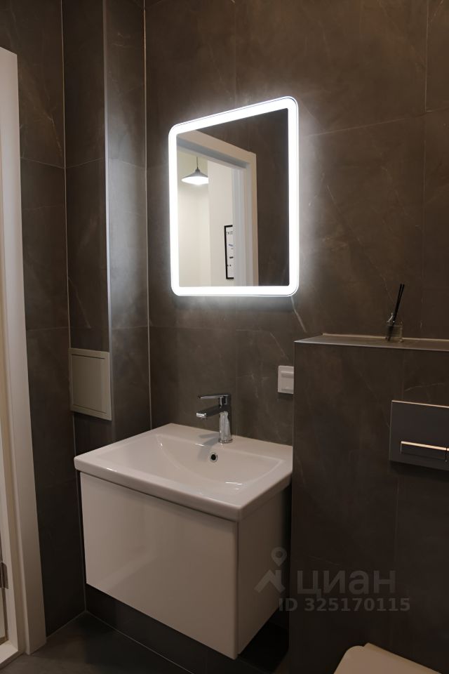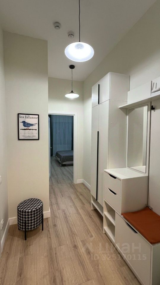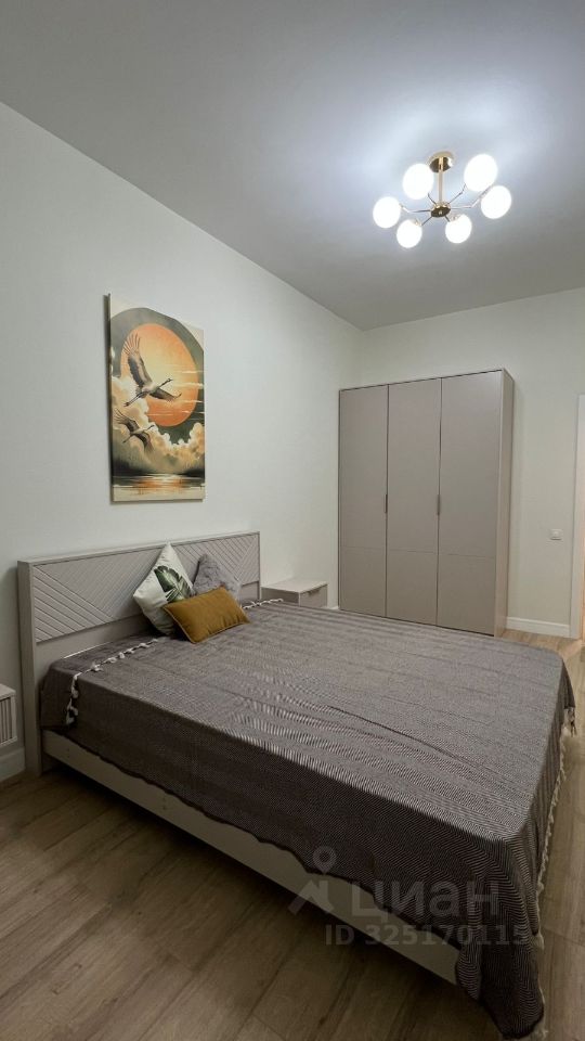 В спальне кровать с подъемным механизмом, что дает дополнительное место для хранения.