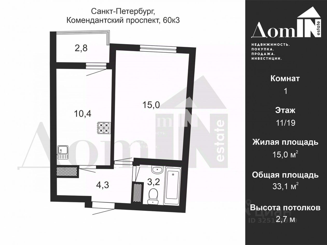 Арт. 127956203 Предлагается к продаже светлая 1-комнатная квартира в современном ЖК комфорт-класса Ultra City. До метро Комендантский проспект 10-12 минут на транспорте. Рядом выезд на ЗСД и КАД, что обеспечивает отличную транспортную доступность. Вся мебель и техника остается в подарок новому собственнику. В доме установлена четырехступенчатая система фильтрации воды. Территория комплекса очень уютная, с хорошо продуманным дизайном ландшафта и зонированием. Двор закрытый и находится под круглосуточным наблюдением. Развитая инфраструктура: детские сады, школы, поликлиники, магазины , аптеки, кафе, рестораны, салоны красоты, в шаговой доступности. На территории ЖК , работают 2 детских сада и школа.