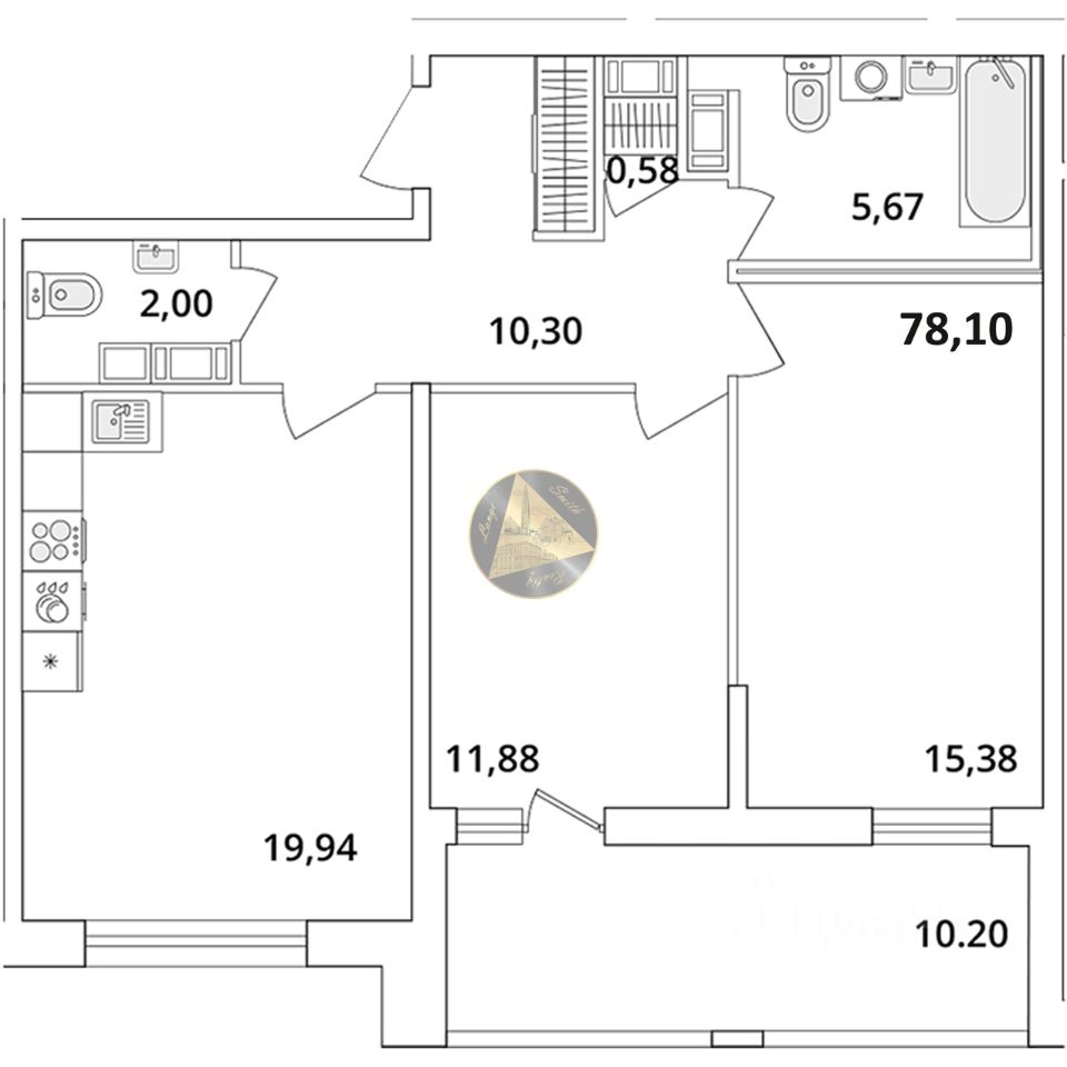 О квартире: - Квартира находится на 15 этаже 18-этажного дома - Общая площадь квартиры 78.10 м2 - Уютная спальня 11.88 м2 - Просторная детская 15.38 м2 - Кухня-гостиная 19.94 м2 - Раздельный санузел 5.67 + 2.00 м2 - Гардеробная 0.58 м2 - Застекленная лоджия 10.20 м2