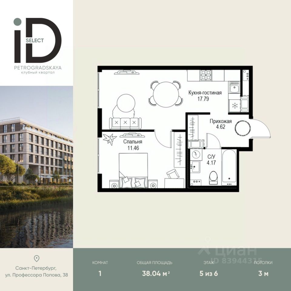 Клубный квартал iD Petrogradskaya на ул. Профессора Попова, 38 объединяет современную архитектуру, удобные планировки и развитую инфраструктуру, предлагая комфортную жизнь в престижном районе Санкт-Петербурга. Из квартир открываются виды на Иоанновский монастырь и реку Карповку. В шаговой доступности три станции метро: ''Петроградская'', ''Чкаловская'' и ''Чёрная речка''. 3-метровые потолки и эксклюзивные планировки создают атмосферу простора и уюта. Внутреннее пространство квартала включает благоустроенные дворы, курдонёры и подземный паркинг. Квартиры площадью от 20 до 136 м² с кухнями-гостиными до 40 м² и террасами с панорамными видами сдаются без отделки, оставляя свободу для индивидуальных интерьерных решений.