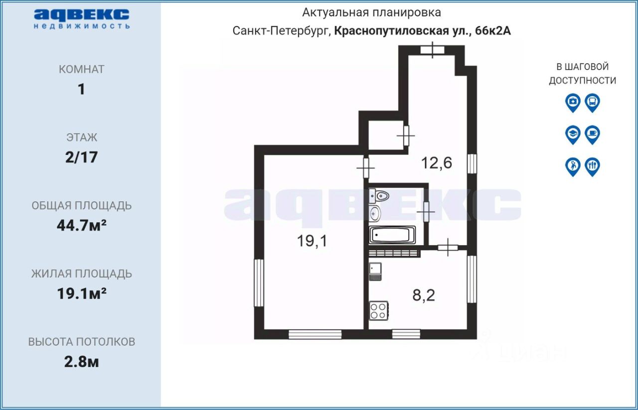 Квартира идеально подходит для тех, кто ценит удобство транспортной доступности и развитую инфраструктуру района.