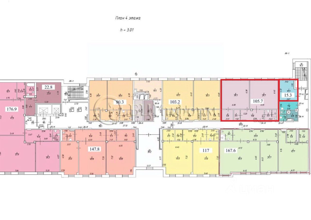 Кабинетная планировка из шести комнат. В хорошем состоянии. Произведена качественная офисная отделка. Напольное покрытие - ковролин/ламинат. Окна - стеклопакеты. Есть санузлы. Помещения оборудованы системой кондиционирования и приточно-вытяжной вентиляцией.