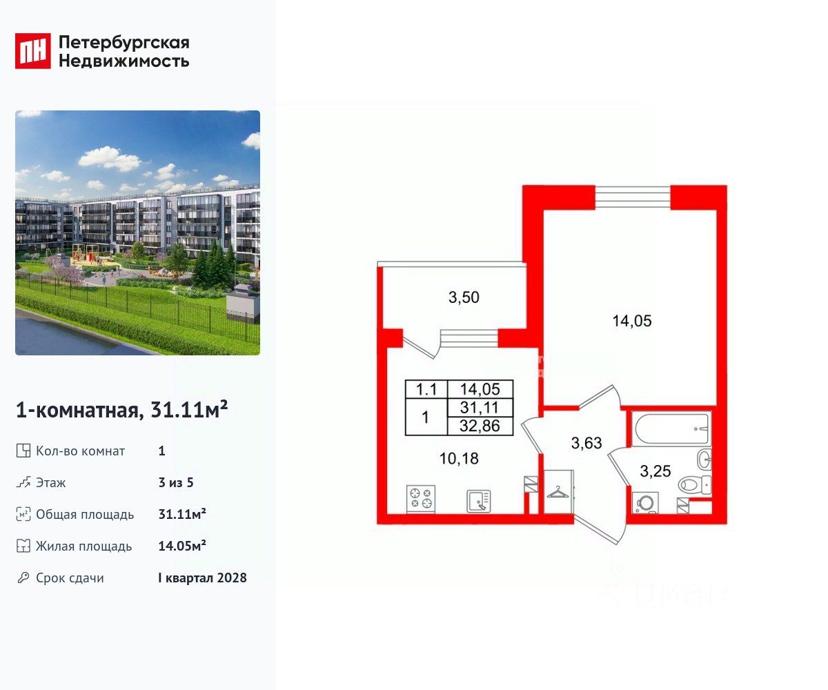 Удобная, классическая планировка, кухня 10.18 м², вместительная прихожая 3.63 м². Общая площадь квартиры - 31.11 м², жилая 14.05 м², высота потолка 2.77 м.