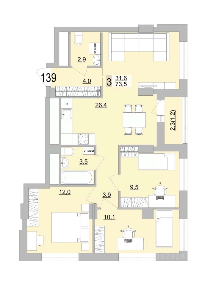 продам 3-к, Черкасская, 5 корп. 312 387 914 ₽