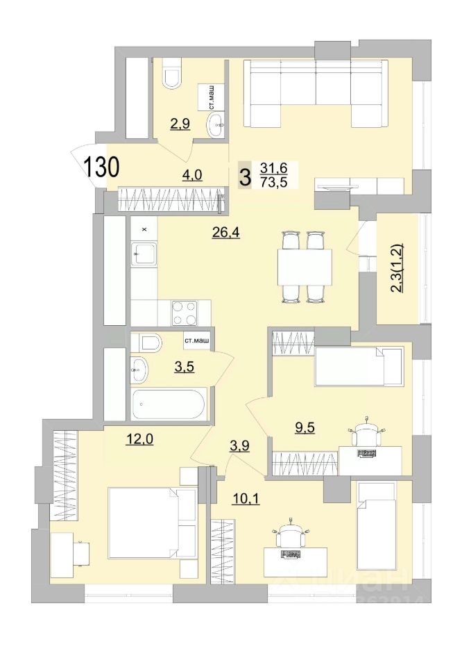 продам 3-к, Черкасская, 5 корп. 312 328 673 ₽