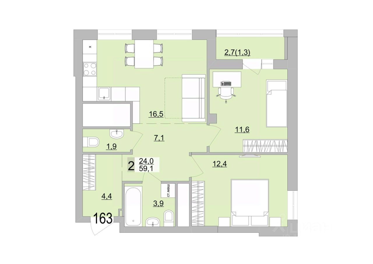 Общая площадь60,45 м2
