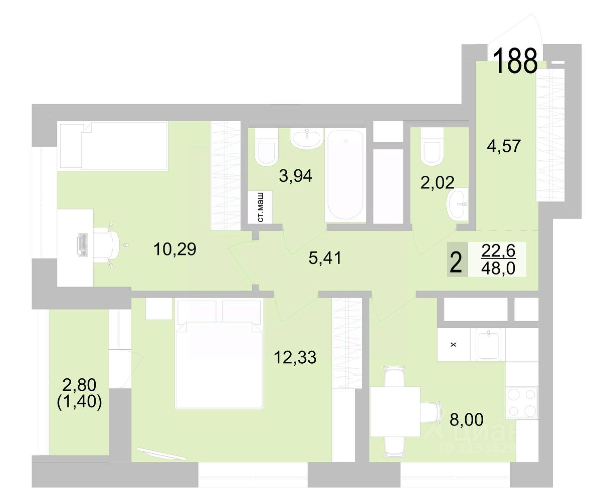 Жилая площадь22,6 м2