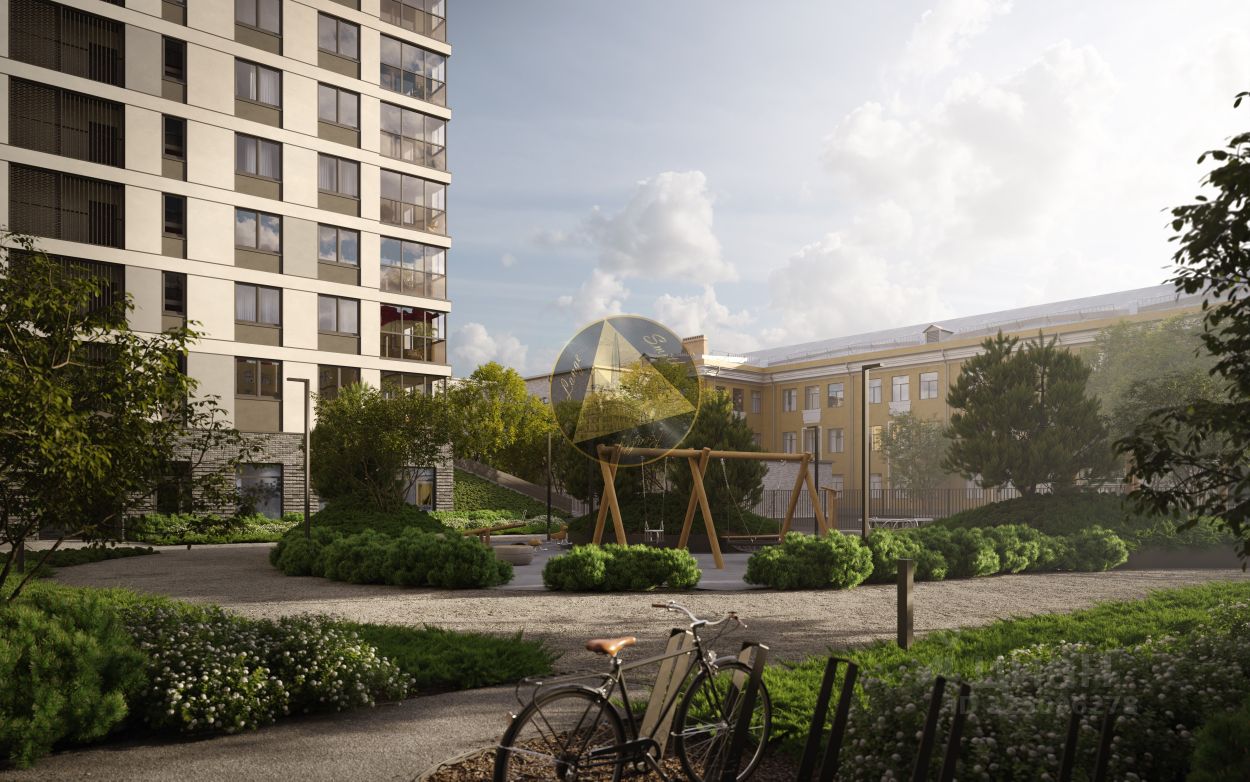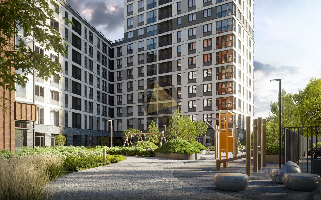 3. На территории комплекса организован зеленый двор с тематическими зонами для детей, подростков и взрослых, спортивная площадка, свободный wi-fi и велопарковки, спроектирован коворкинг с кофе-поинтом.