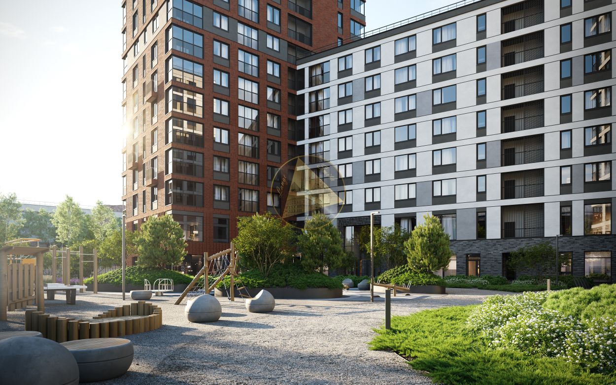 3. На территории комплекса организован зеленый двор с тематическими зонами для детей, подростков и взрослых, спортивная площадка, свободный wi-fi и велопарковки, спроектирован коворкинг с кофе-поинтом.