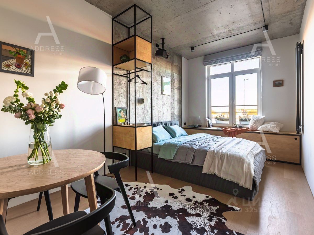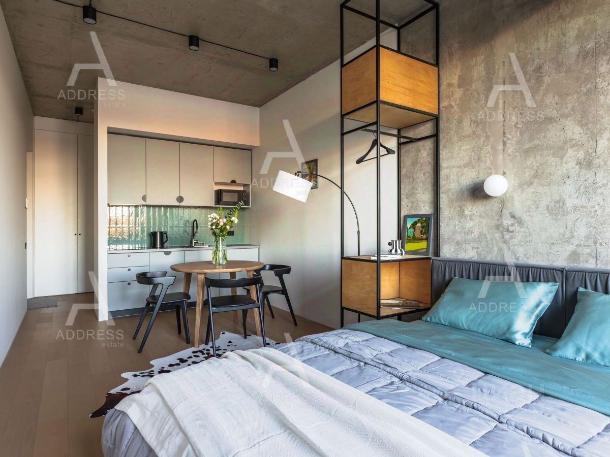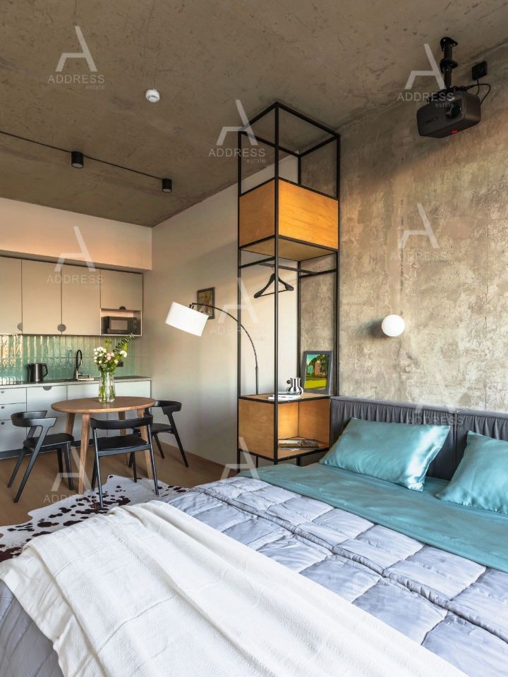 Квартира -студия с дизайнерским ремонтом, оборудована всей мебелью и бытовой техникой, установлен проектор для просмотров кино.