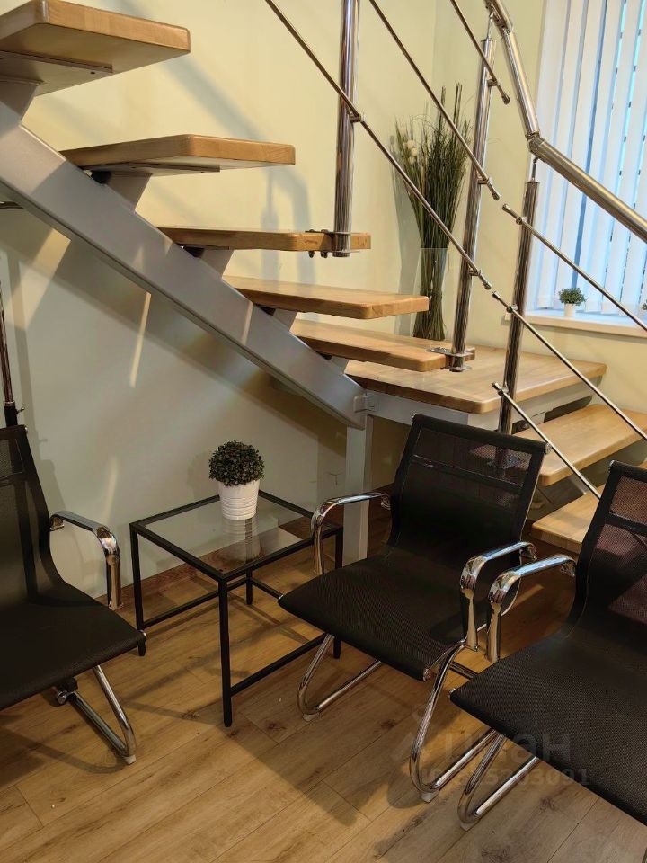 Офис сдаётся с мебелью (4 рабочих места, шкафы под документы, тумбы, рабочие кресла, диван, кресла для отдыха). На первом этаже есть шкаф для верхней одежды.