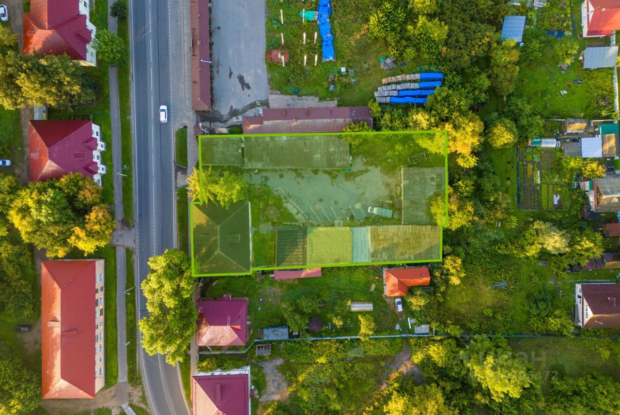 Объект расположен на 1й линии ул. Советская, в 5 минутах Захаровского парка. Участок правильной формы, имеется собственный съезд и выезд. Ближайшее окружение представлено коммерческой и жилой застройкой. На участке расположены два здания площадью 388,8 м2 и 64 м2, а также два гаража общей площадью 591,3 м2.