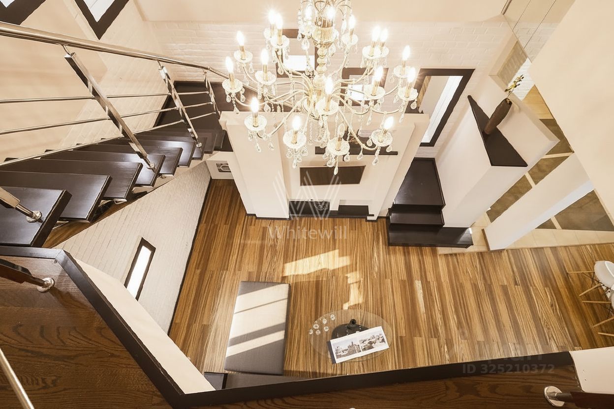 Квартира укомплектована мебелью и бытовой техникой. Высота потолков от 3,5 до 9 метров.
