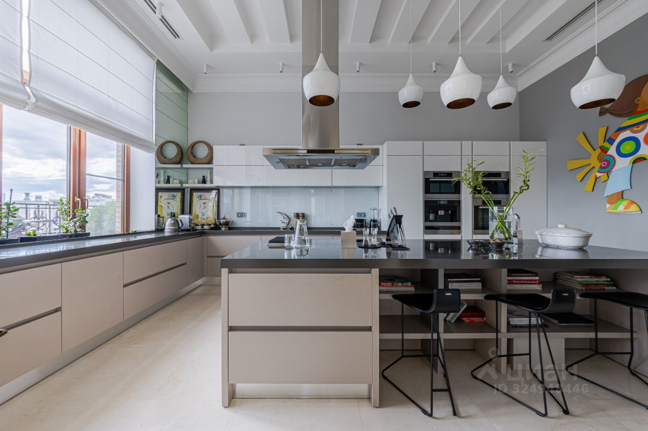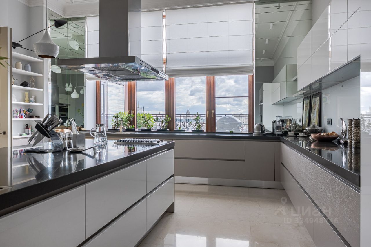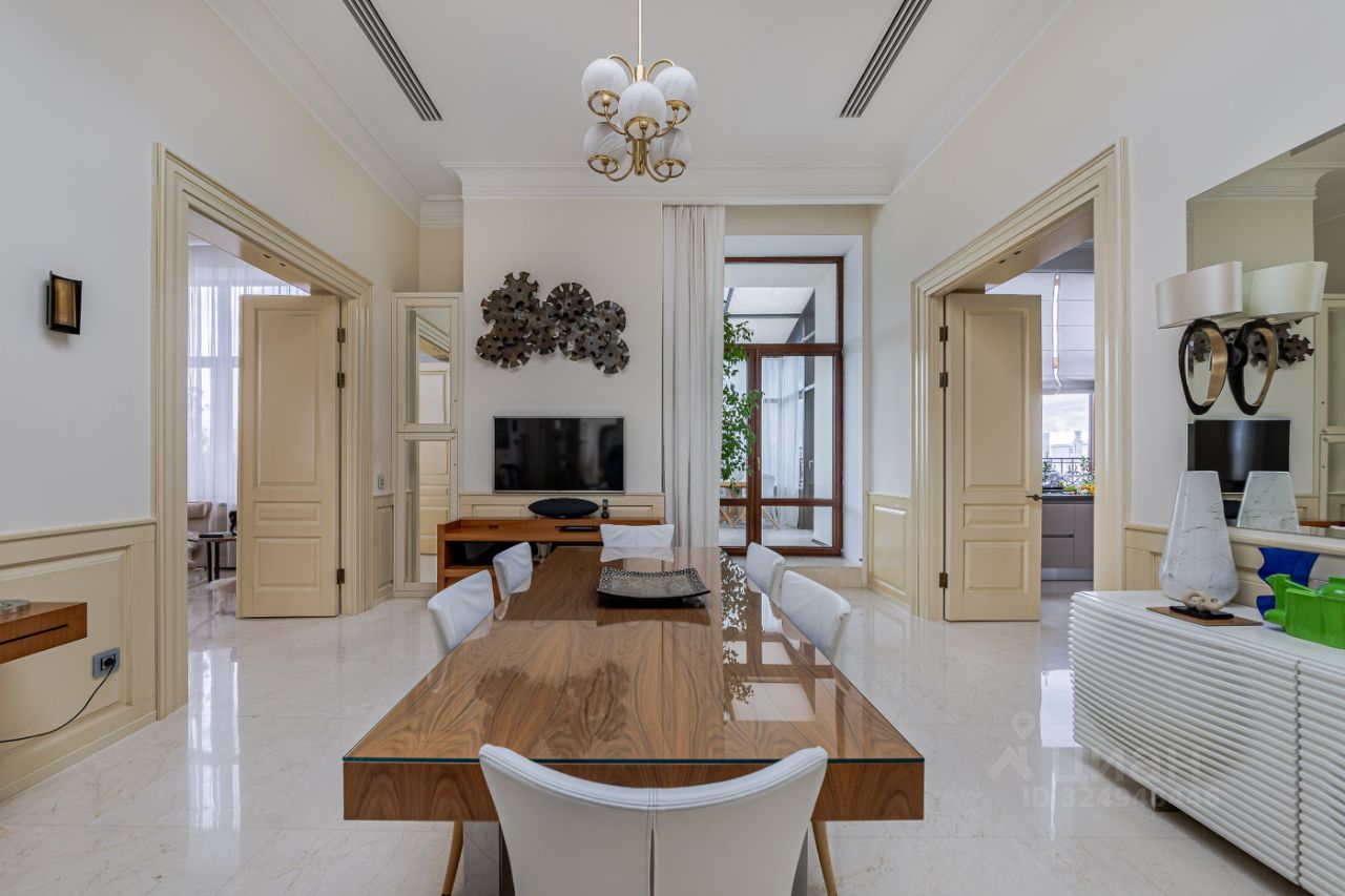 В жилом комплексе по адресу 1-й Тверской-Ямской переулок, 11 предлагается стильный пентхаус с потолками высотой 5 метров и потрясающими видами из окон на все 360 градусов. Общая площадь квартиры составляет 758 квадратных метров, оформленных в современном стиле с использованием натуральных материалов и эксклюзивной мебели. В пентхаусе предусмотрено 4 спальни с отдельными санузлами, кабинет, две просторные гардеробные, одна из которых двухуровневая, три гостиные, столовая и кухня. Также в квартире есть тренажерный зал, спа-зона с купелью и мастерская. Для гостей предусмотрен отдельный блок с комнатами для нянь и помощников. Дополнительные удобства включают действующий камин, ванную комнату с балконом и две террасы — идеальное место для отдыха и развлечений.