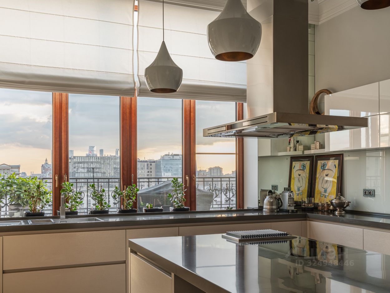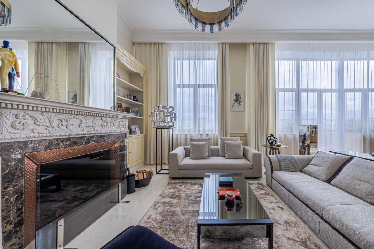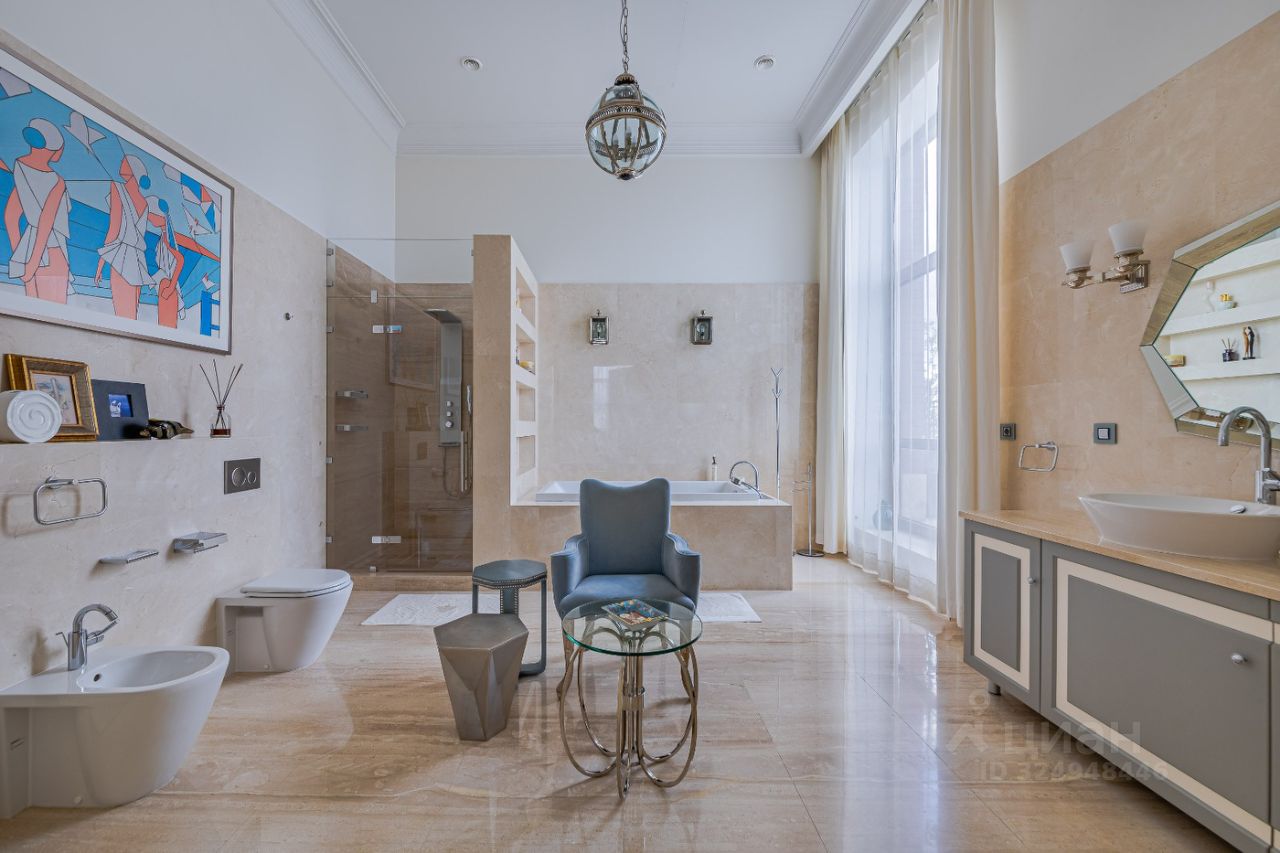 В жилом комплексе по адресу 1-й Тверской-Ямской переулок, 11 предлагается стильный пентхаус с потолками высотой 5 метров и потрясающими видами из окон на все 360 градусов. Общая площадь квартиры составляет 758 квадратных метров, оформленных в современном стиле с использованием натуральных материалов и эксклюзивной мебели. В пентхаусе предусмотрено 4 спальни с отдельными санузлами, кабинет, две просторные гардеробные, одна из которых двухуровневая, три гостиные, столовая и кухня. Также в квартире есть тренажерный зал, спа-зона с купелью и мастерская. Для гостей предусмотрен отдельный блок с комнатами для нянь и помощников. Дополнительные удобства включают действующий камин, ванную комнату с балконом и две террасы — идеальное место для отдыха и развлечений.