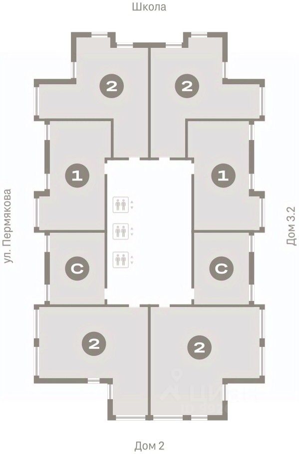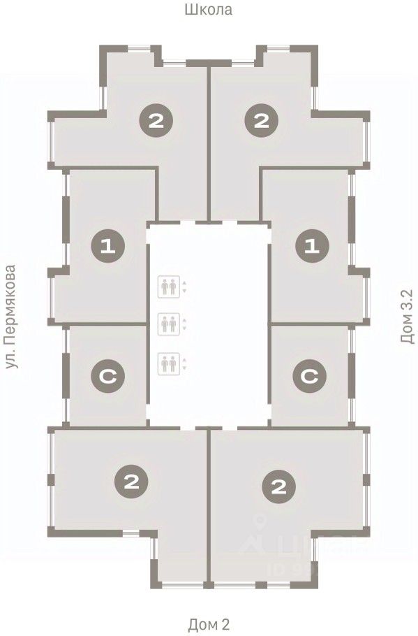 Дом монолитный, многоподъездный, переменной этажности, от 7 до 25 этажей. Квартира находится в 1-й секции высотой 25 этажей в корпусе 3-1. На этаже 8 квартир. В подъезде 2 пассажирских и 1 грузовой лифт.