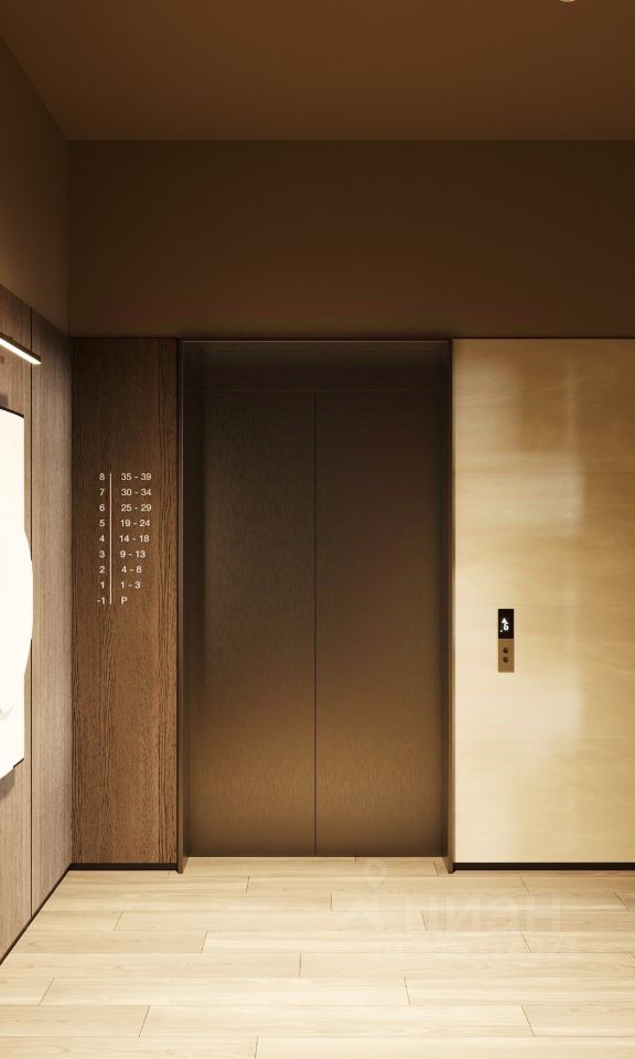 Дом монолитный, многоподъездный, переменной этажности, от 7 до 25 этажей. Квартира находится в 1-й секции высотой 25 этажей в корпусе 3-1. На этаже 8 квартир. В подъезде 2 пассажирских и 1 грузовой лифт.