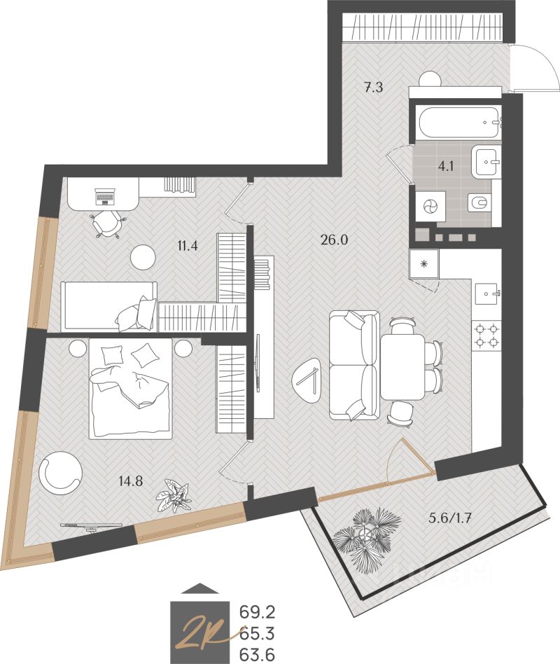 Продаётся 2-комнатная квартира в строящемся доме (Дом 2), срок сдачи: III-кв. 2027, общей площадью 65.3 кв.м., на 6 этаже. Новый жилой комплекс ''Берег морской'' от застройщика ''Калининградстройинвест'' расположен по адресу: Калининградская обл., г. Светлогорск, ул. Олимпийский бульвар.