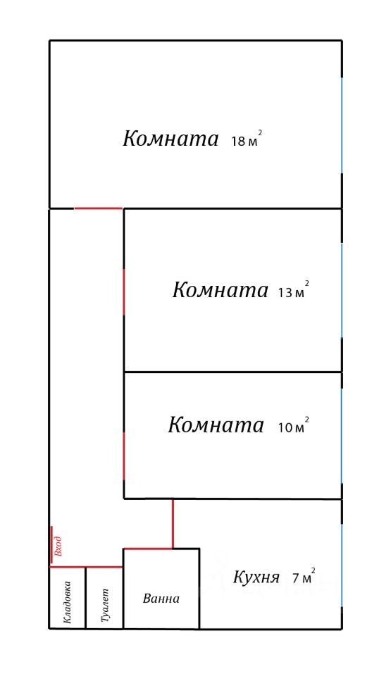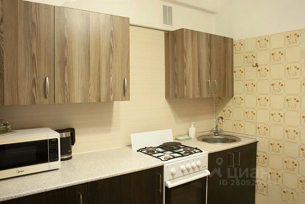 Описание квартиры Квартира состоит из трех комнат: •Большая комната (18 м²): угловой диван (размер спального места — 140204 см), два шкафа, тумба под ТВ и телевизор. •Средняя комната (14 м²): кровать (спальное место — 90200 см) и комод. •Маленькая комната (10 м²): раскладной диван (спальное место — 190150 см) и стеллаж с полками и штангой. Санузел раздельный. Есть кладовка для хранения вещей. Окна выходят во двор, тихий и просторный, что обеспечивает тишину и покой даже в часы пик. Подъезд чистый, поддерживается в хорошем состоянии. Ведется круглосуточное видеонаблюдение.