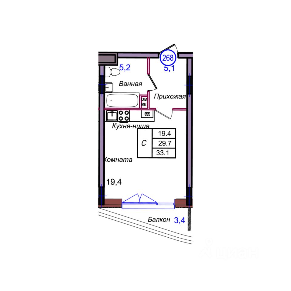 Общая площадь33,1 м2