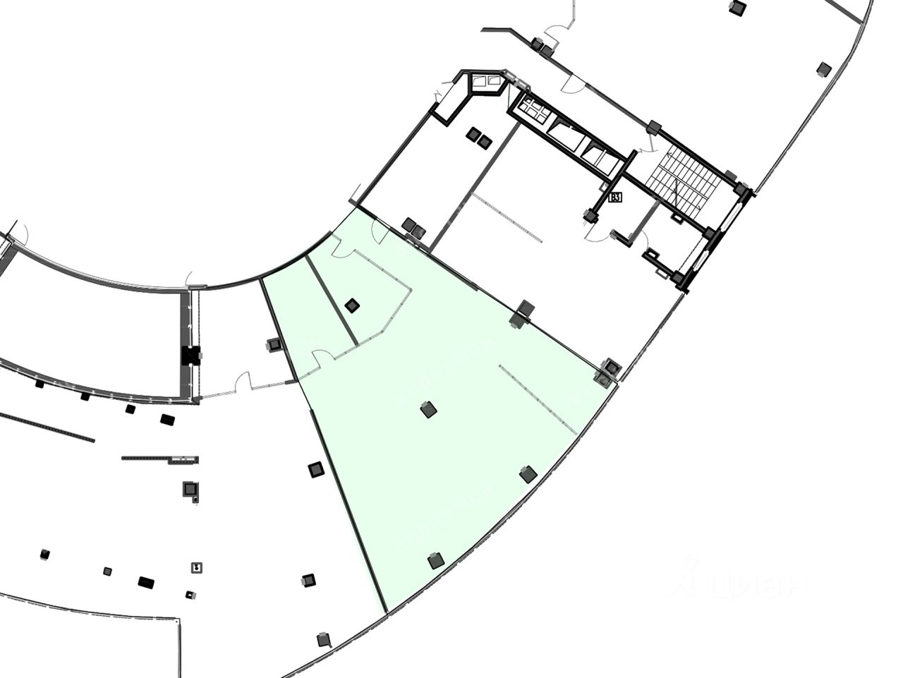 Офисное помещение 236.1 кв. м в бизнес-центре ''Аэроплаза''.