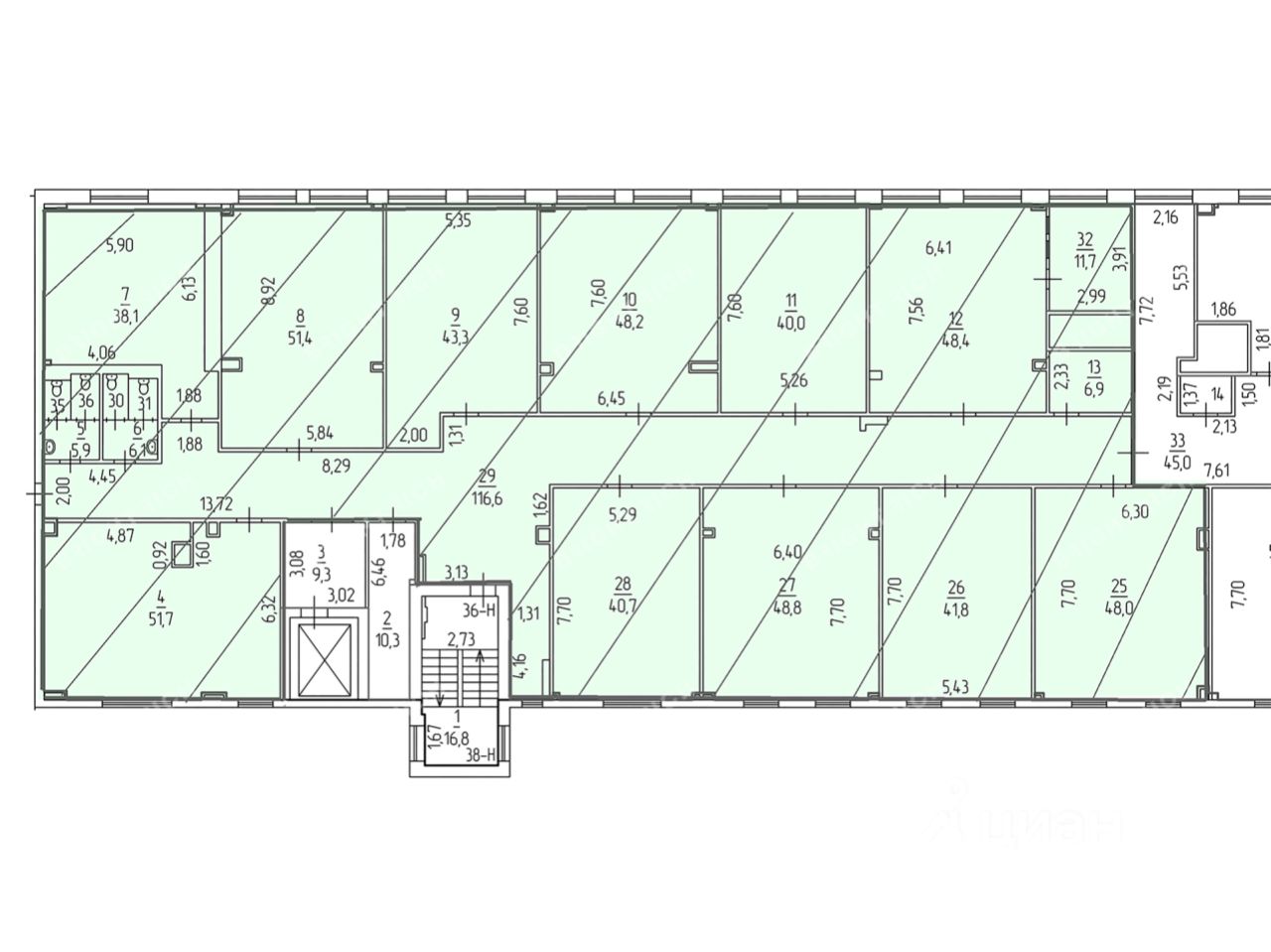 Характеристики: - Класс: B, - Арендопригодная площадь: 9577.8, - Код налоговой: 05, - Размер типового этажа: 2300, - Высота потолков: 3.2 м, 4.49 м, - Наличие лифта: Есть, - Кол-во мест наземного паркинга: 65, - Интернет-провайдеры: Морской Экспресс, - Шаг колонн: 6x6 м.