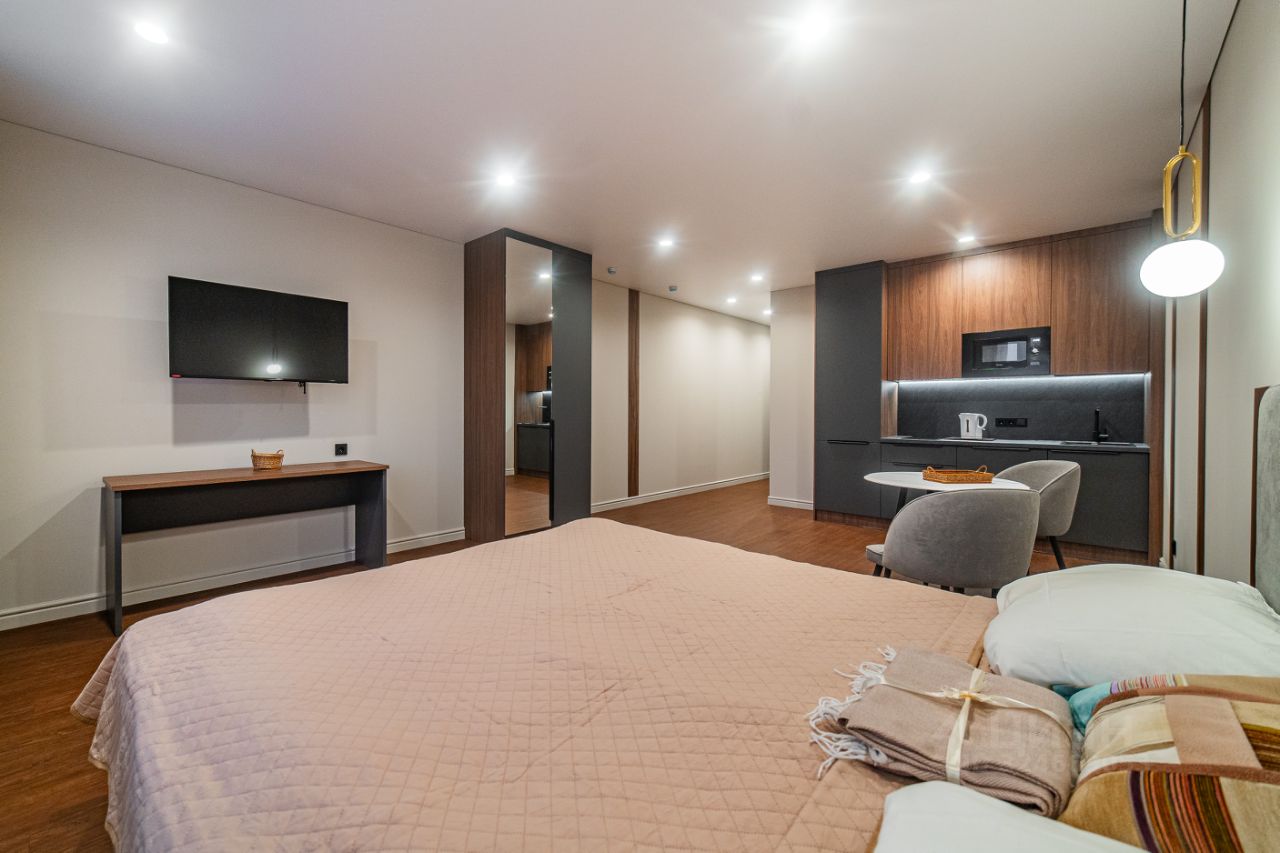 В комплексе уже открылся ресторан, в 100 м ресторан Ферма с кондитерской. Дизайнерский ремонт выполнен в современном стиле, есть все необходимое для Вашего проживания, два панорамных окна выходят на набережную (шум дороги не слышен), заброшенный дом на фото уже в процессе сноса. Для хранения установлен шкаф в прихожей и имеется вместительный шкаф в самой спальне, комната очень просторная. Будем рады воспитанным питомцам.
