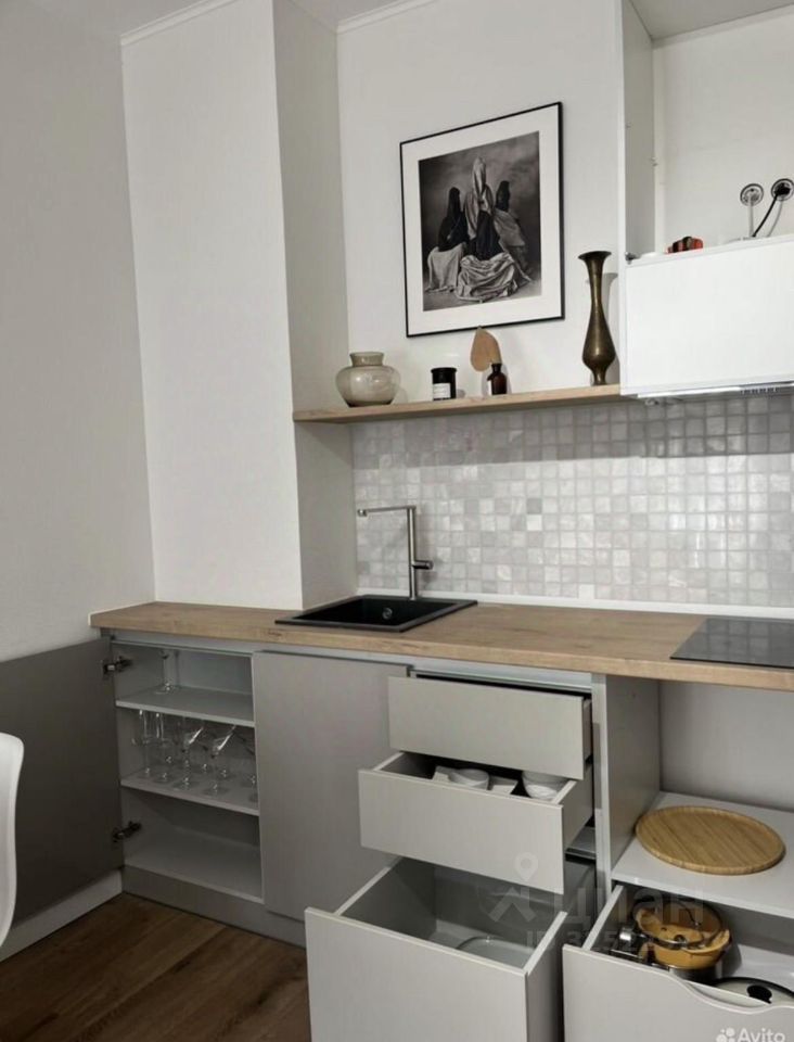 Новому владельцу остается встроенная кухня, вместительный шкаф в спальне.