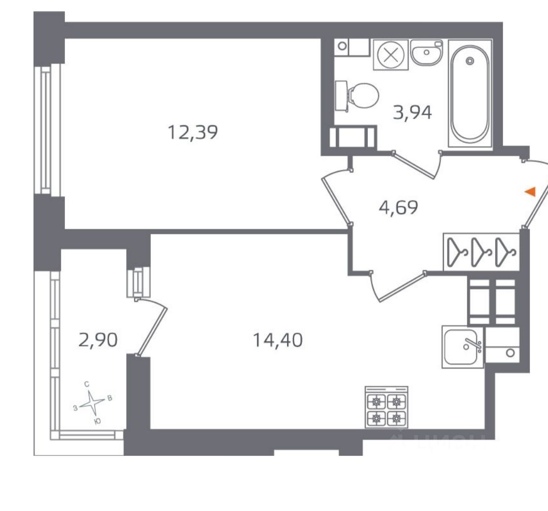 Отсутствие необходимости в ремонте: Полностью выполненная качественная чистовая отделка. Удачная планировка: Изолированная спальня (12,4 м²) и просторная кухня-гостиная (14,4 м²). Прихожая позволяет разместить функциональную систему хранения. Оптимальное расположение в доме: 15-й этаж с панорамным видом. Ориентация окон на юго-запад. Данный тип квартир в продаже у Застройщика более не представлен. Срок сдачи: До апреля 2026 года.