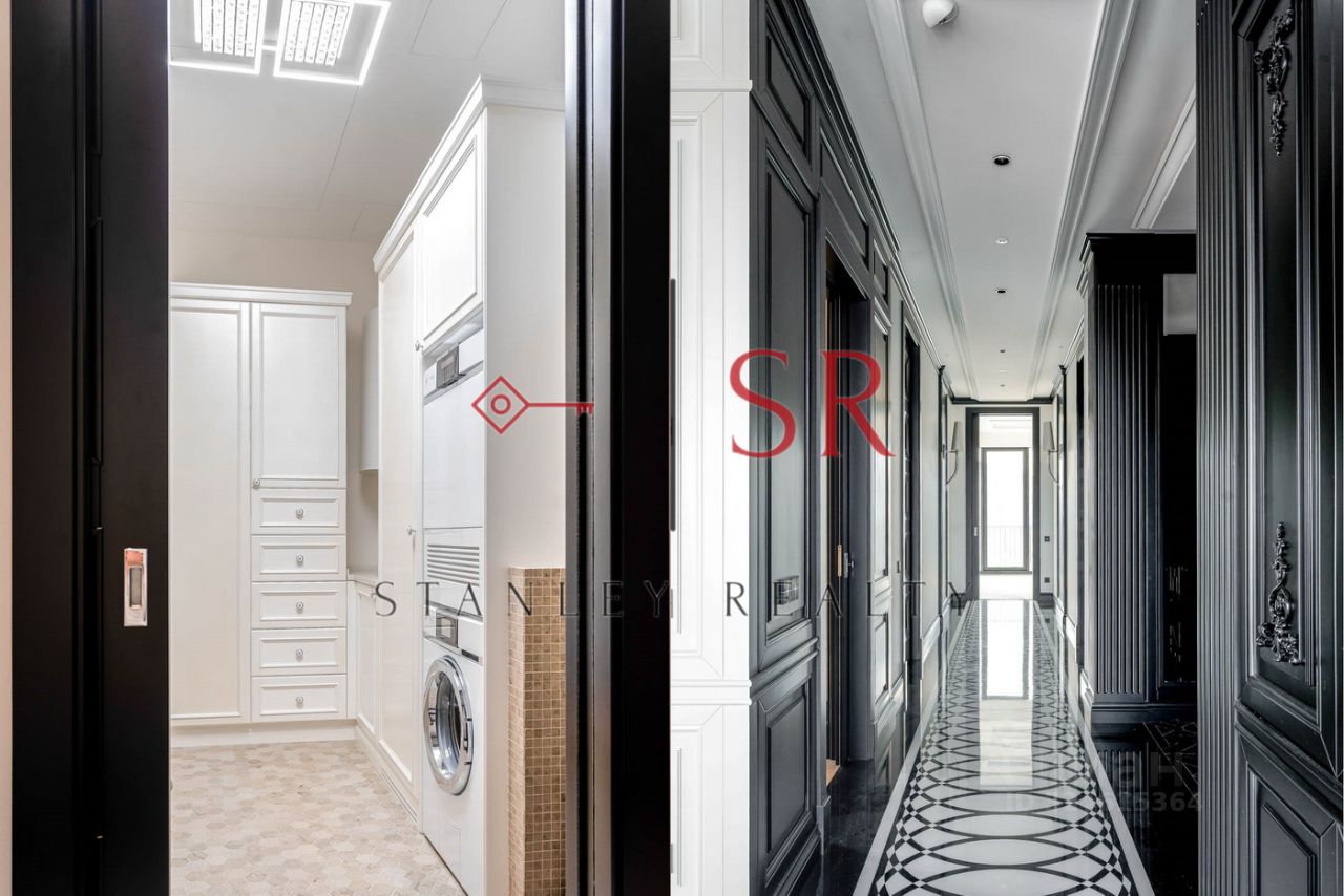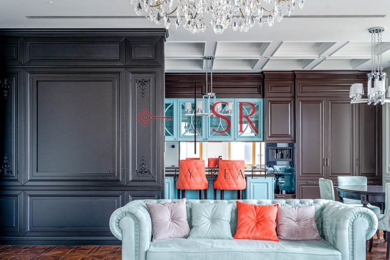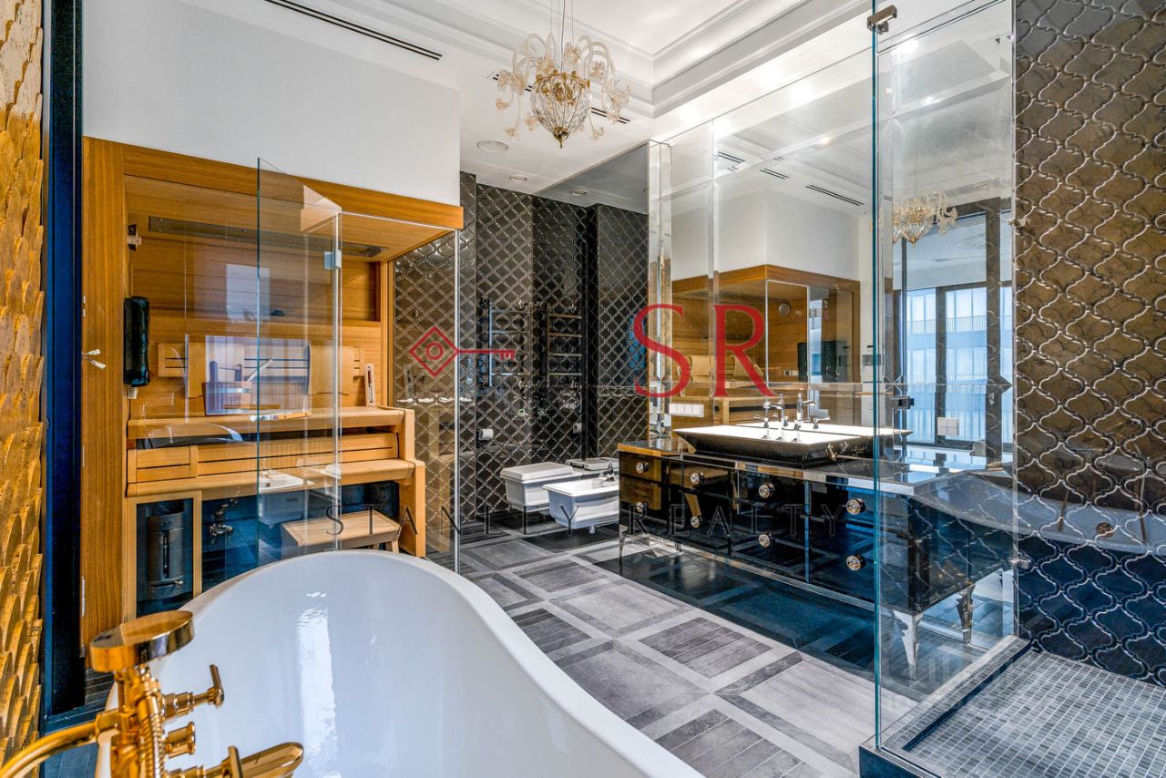 Ремонт выполненный для собственного использования из премиальных материалов с удобной планировкой на три стороны: - мастер-спальня с большой ванной комнатой (оснащена сауной) и гардеробной комнатой, - небольшая вторая спальня или кабинет, - огромная гостиная объединенная с кухней и панорамным остеклением, - гостевой санузел с душевой, - постирочная, - большое количество втроенных шкафов и мест для хранения, где вы сможете легко разместить свои вещи.