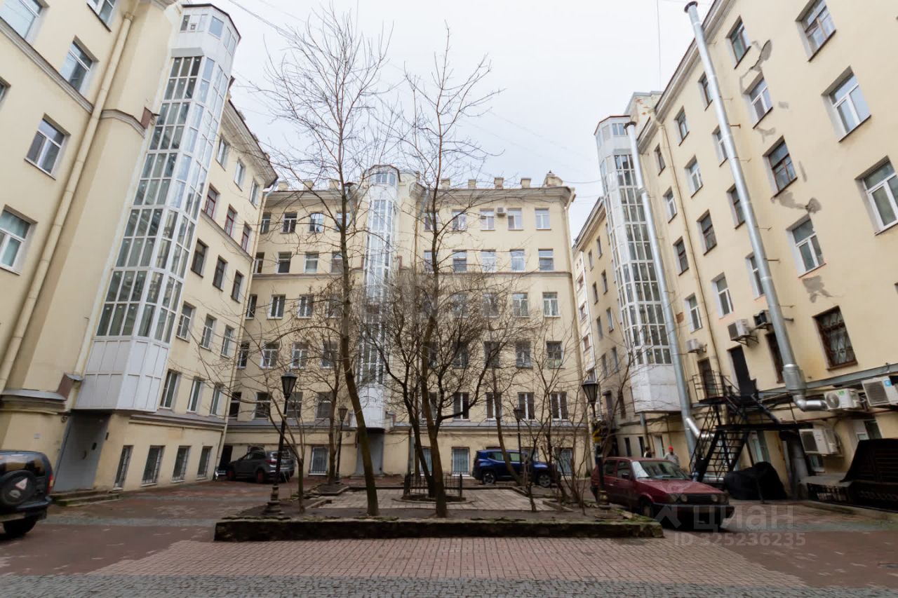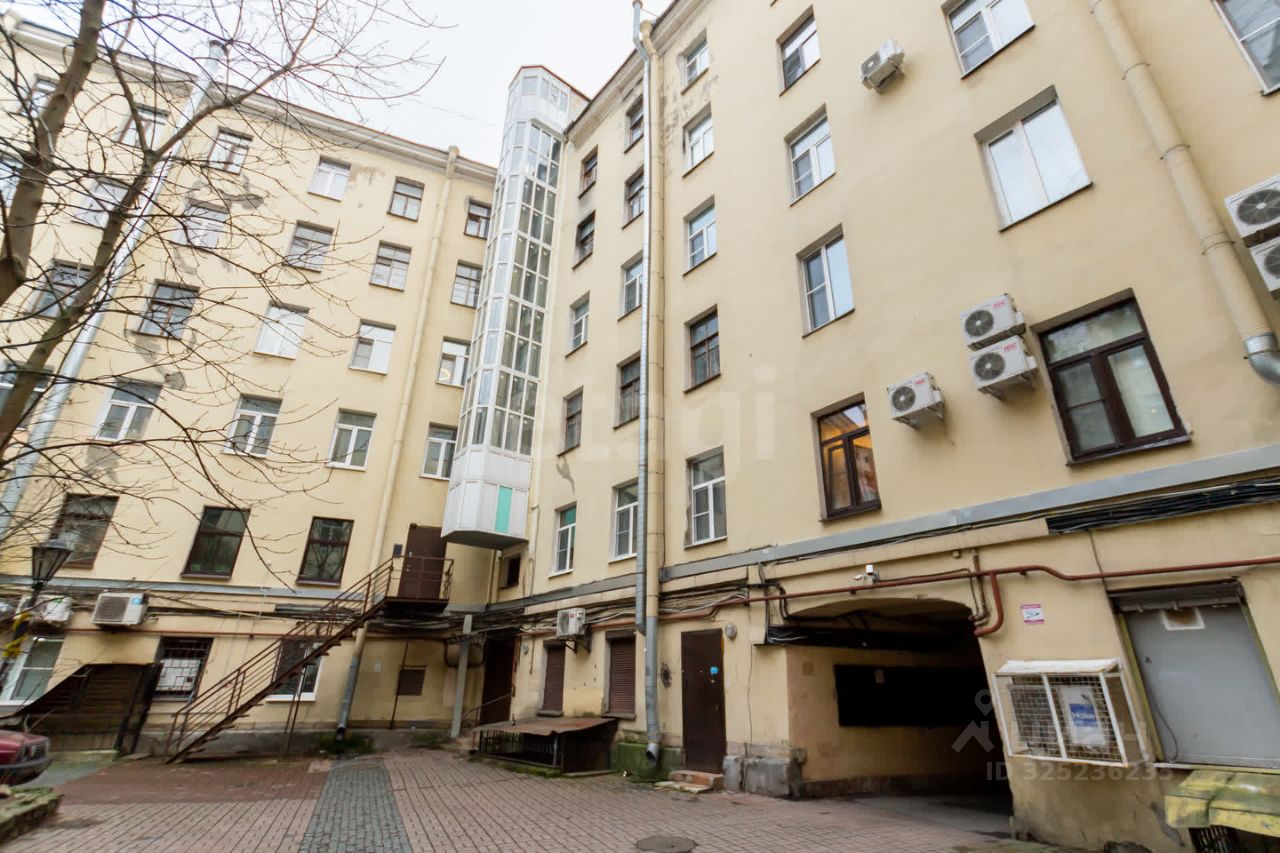 Вход в квартиру возможен с двух сторон: с Лиговского проспекта по широкой парадной лестнице и со стороны двора, что более удобно, так как этот вход оснащен лифтом. Вход во двор защищен металлическим забором, попасть можно только по индивидуальным ключам, поэтому посторонних не бывает. В центре чистого и ухоженного внутреннего двора растут взрослые деревья.