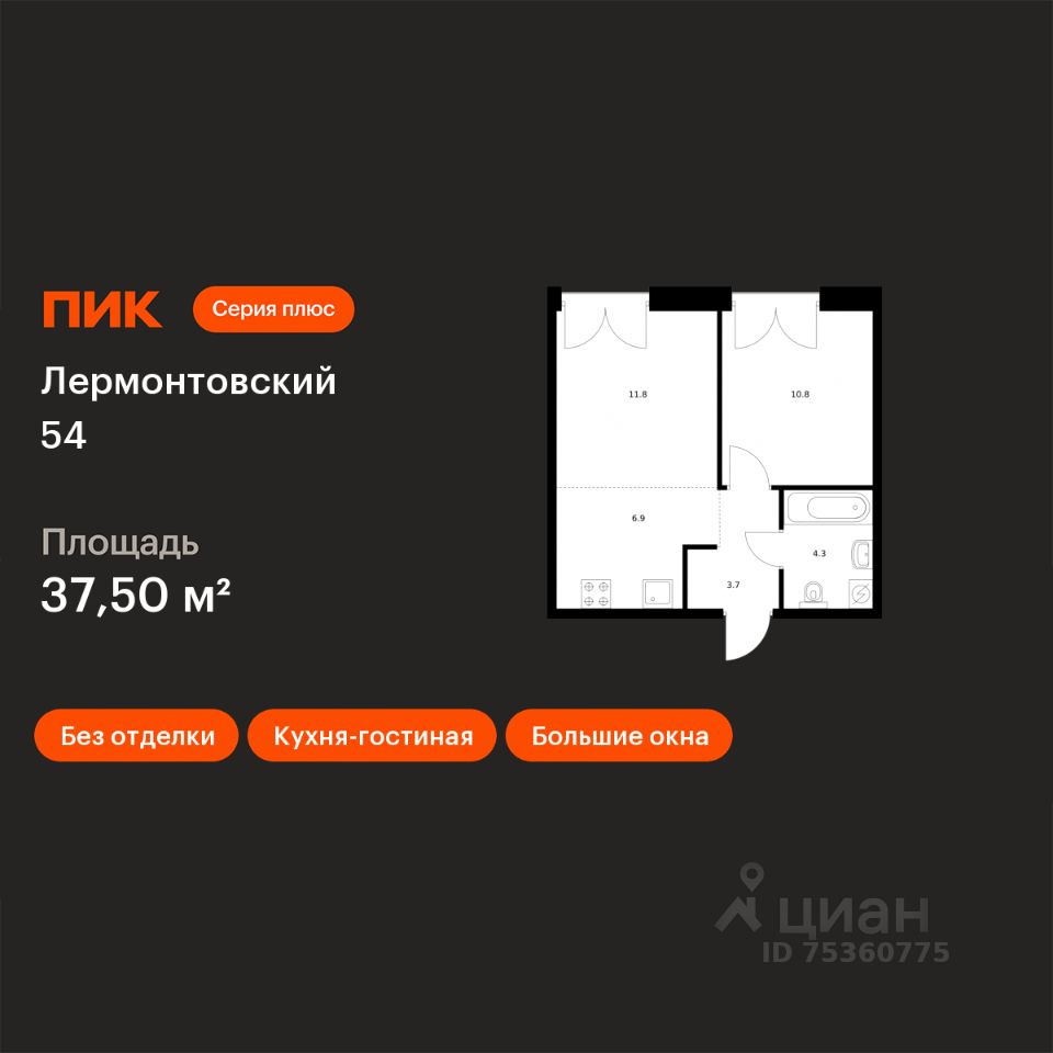Продаётся 1-комн. квартира площадью 37,5 кв.м на 2 этаже 9 этажного дома (Корпус 2.1, Секция 6) проекта ПИК Лермонтовский 54. Светлый просторный подъезд на уровне земли, функциональная планировка, большие окна, без отделки.