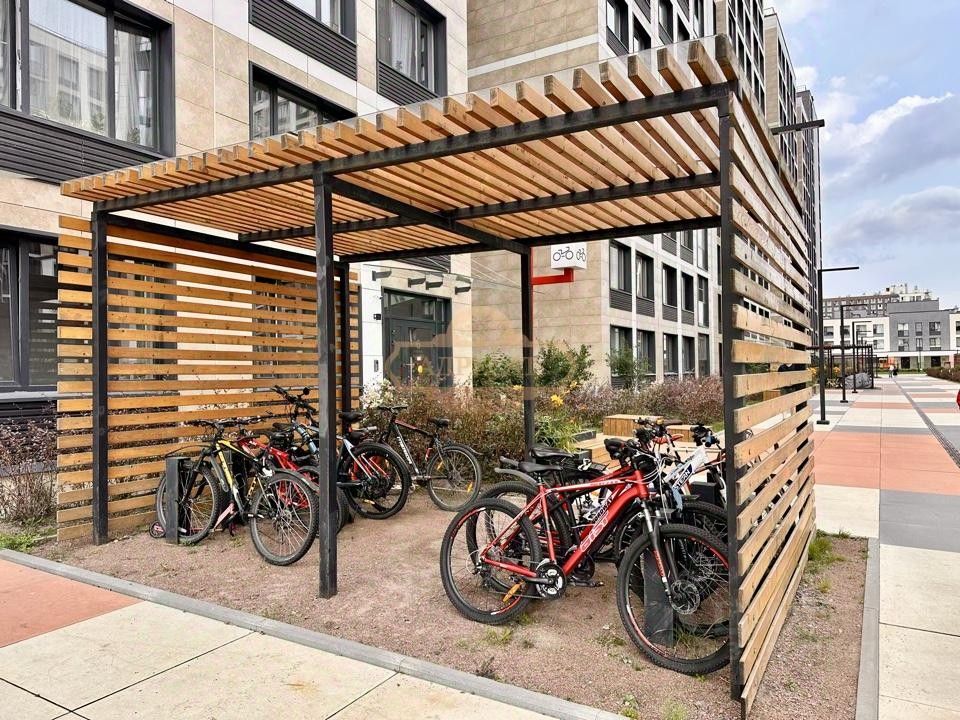 О доме: здание 2022 г., грузовой и пассажирский лифты. Внутренняя территория ЖК полностью огорожена по периметру. Входы во двор и парадную оборудованы видеодомофонами, установлена круглосуточная система видеонаблюдения по периметру, на детских площадках, въездах в паркинг, на первых этажах и в лифтах. Предусмотрена парковка для велосипедов. Дворы свободны от машин, предусмотрен подземный паркинг на 672 м/места, есть наземная закрытая парковка. На первом этаже - просторная колясочная.