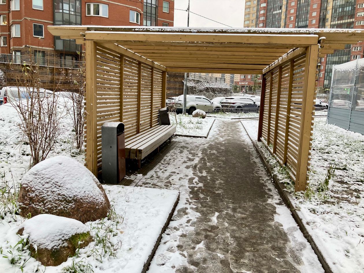 Облагороженная придомовая территория с цветами, красивыми кустарниками, парковыми навесами со скамейками. Современная спортивная площадка с тренажерами. В шаговой доступности магазины, торговые и спортивные комплексы, кафе, салоны различных услуг. Для прогулок неподалеку старинный Шуваловский парк с прудами.