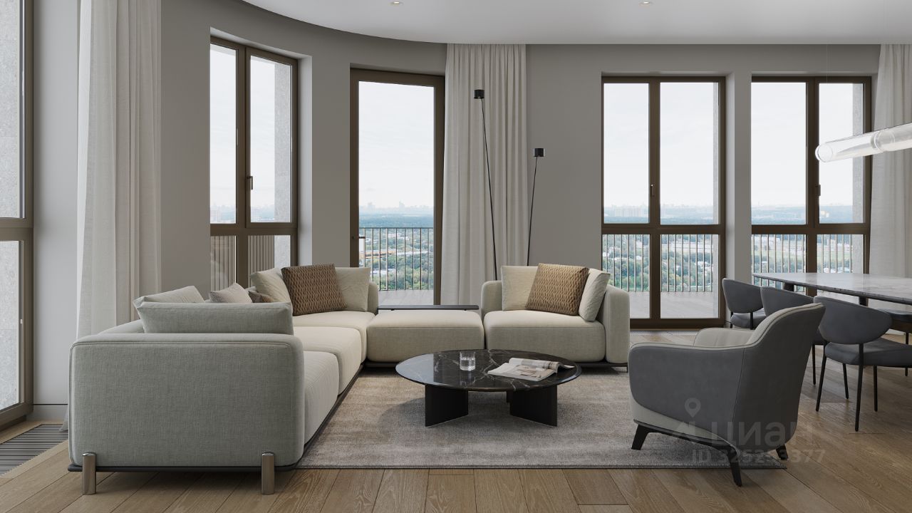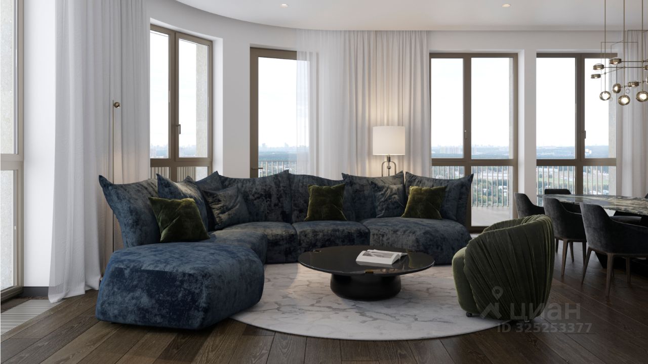 В продаже — трехкомнатная квартира с чистовой отделкой, общей площадью 132,71 кв. м. Квартира расположена на втором этаже семиэтажной секции клубного дома класса Суперб в новом районе СберСити, который строит Сбер. Дом находится на первой береговой линии Москвы-реки.