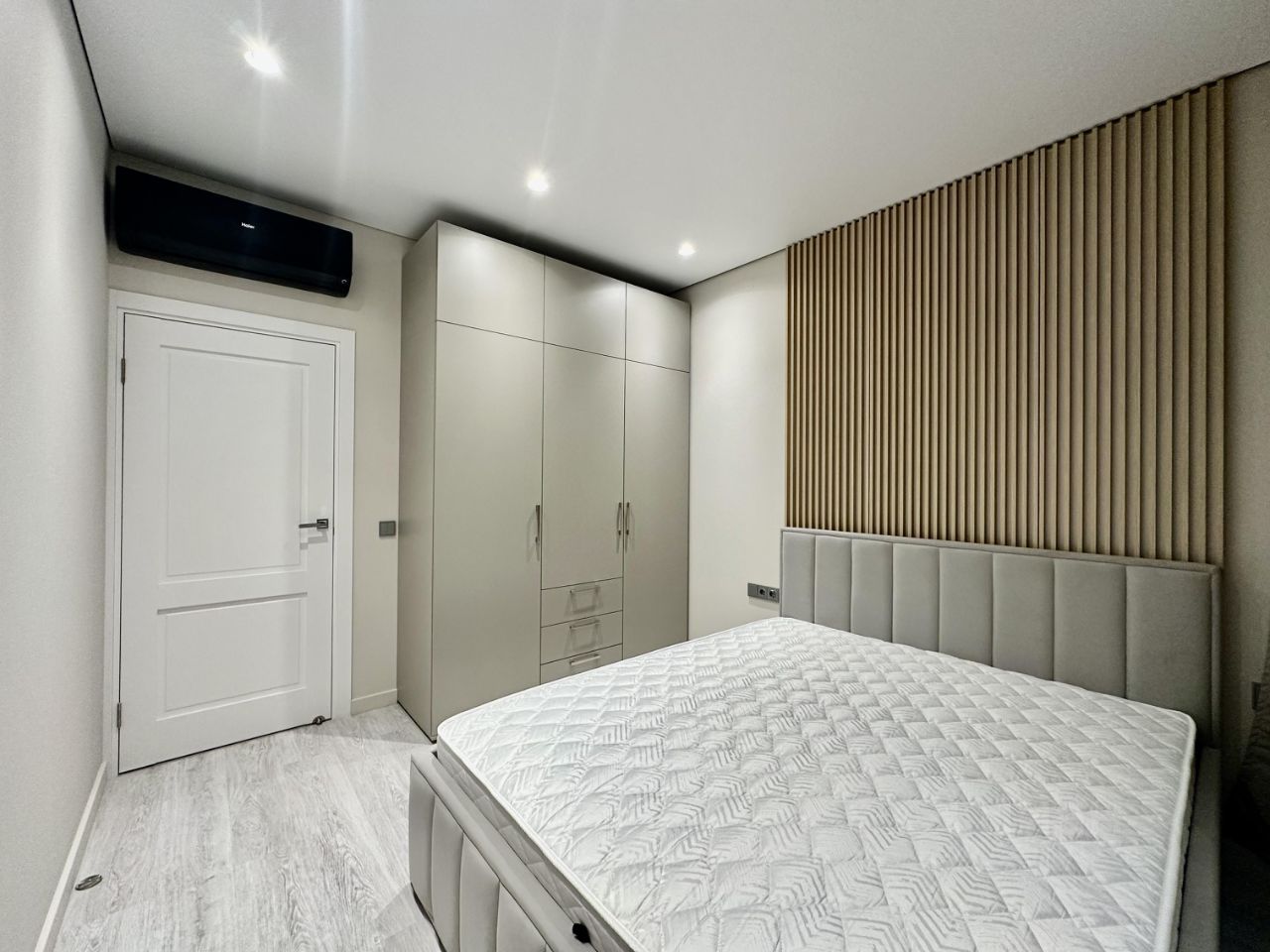 Спальня: -большая двуспальная кровать (спальное место -16002000), ортопедический абсолютно новый матрас средней жесткости с защитным чехлом, газлифт - большое место для сезонного хранения вещей -большой трехсекционный платяной шкаф для одежды (18002000) -наличие розеток для установки телевизора при желании -мягкая закарнизная подсветка Просторный совмещённый санузел: -инсталяция и гигиенический душ -прозрачная стеклянная шторка -зеркало с подсветкой -электрический полотенцесушитель -новая стирально-сушильная машина с функцией обработки паром Прихожая: -декорированная зона вешалки (крючки) -большое зеркало в полный рост -система умного дома