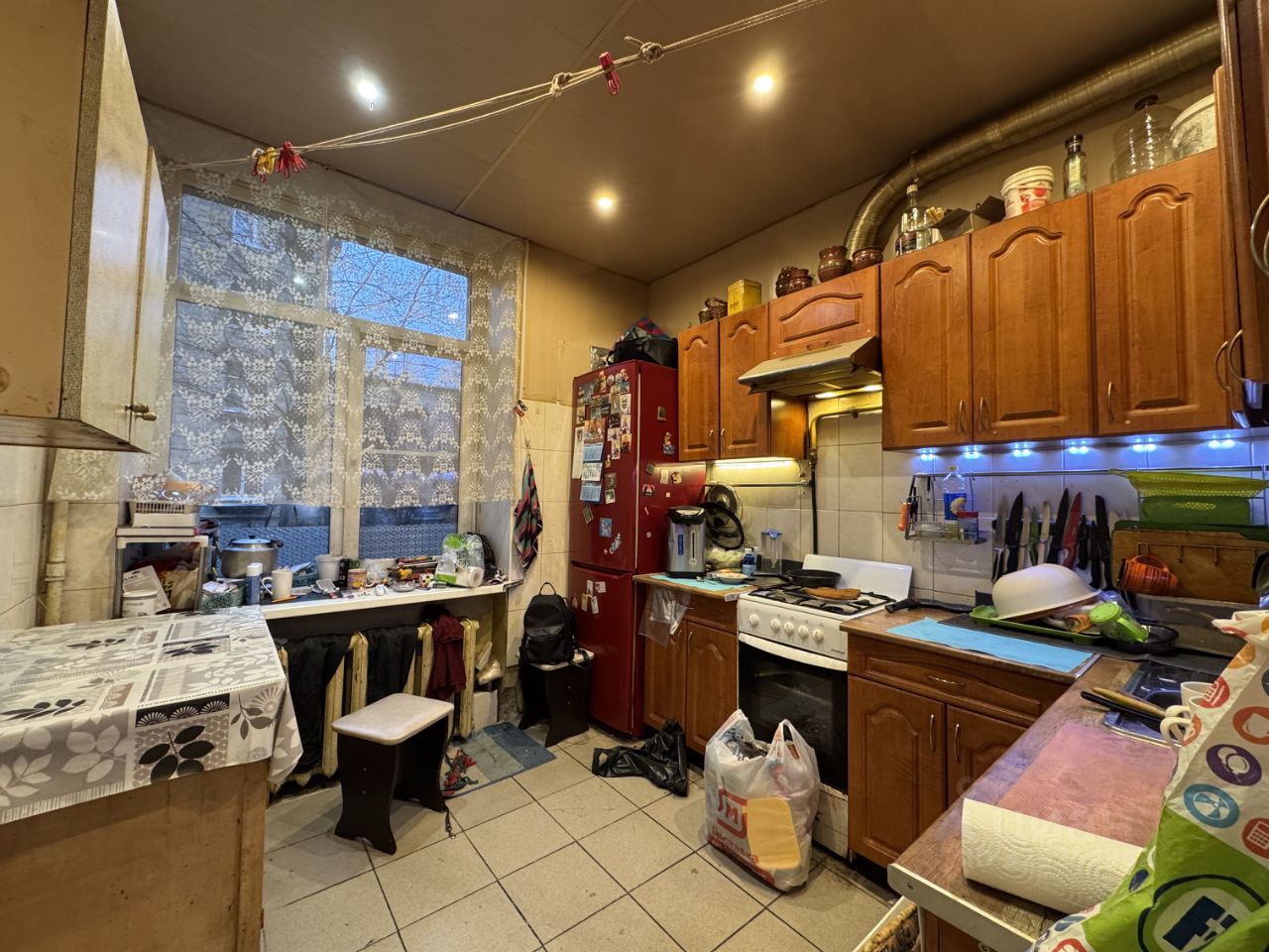 •Высокий 1-й этаж. Комната 14 м. кв. Потолки 3 метра. Порядок пользования определен,ю. Просторная кухня, места хватит всем.