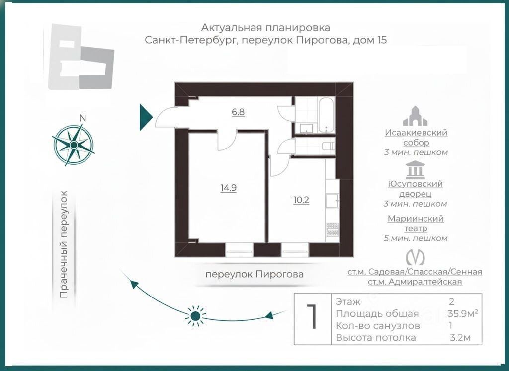 продам 1-к, Пирогова переулок, 1513 500 000 ₽