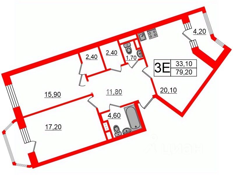 Двухсторонняя квартира удобной планировки с двумя балконами.