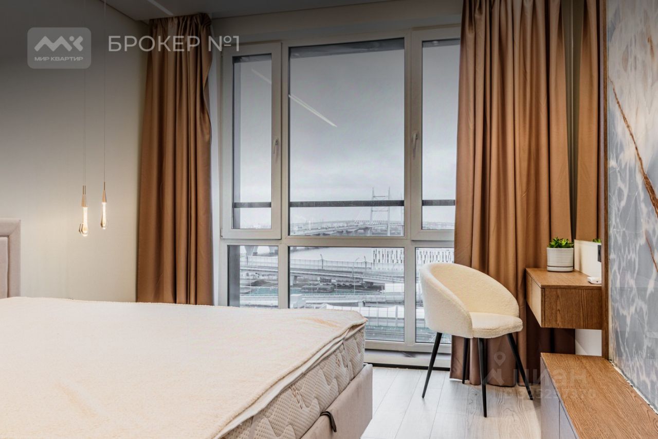 Ценная особенность данной квартиры - панорамное остекление в каждой комнате, которое создает ощущение простора и свободы. Из спальни открывается роскошный вид на воду и панораму города.