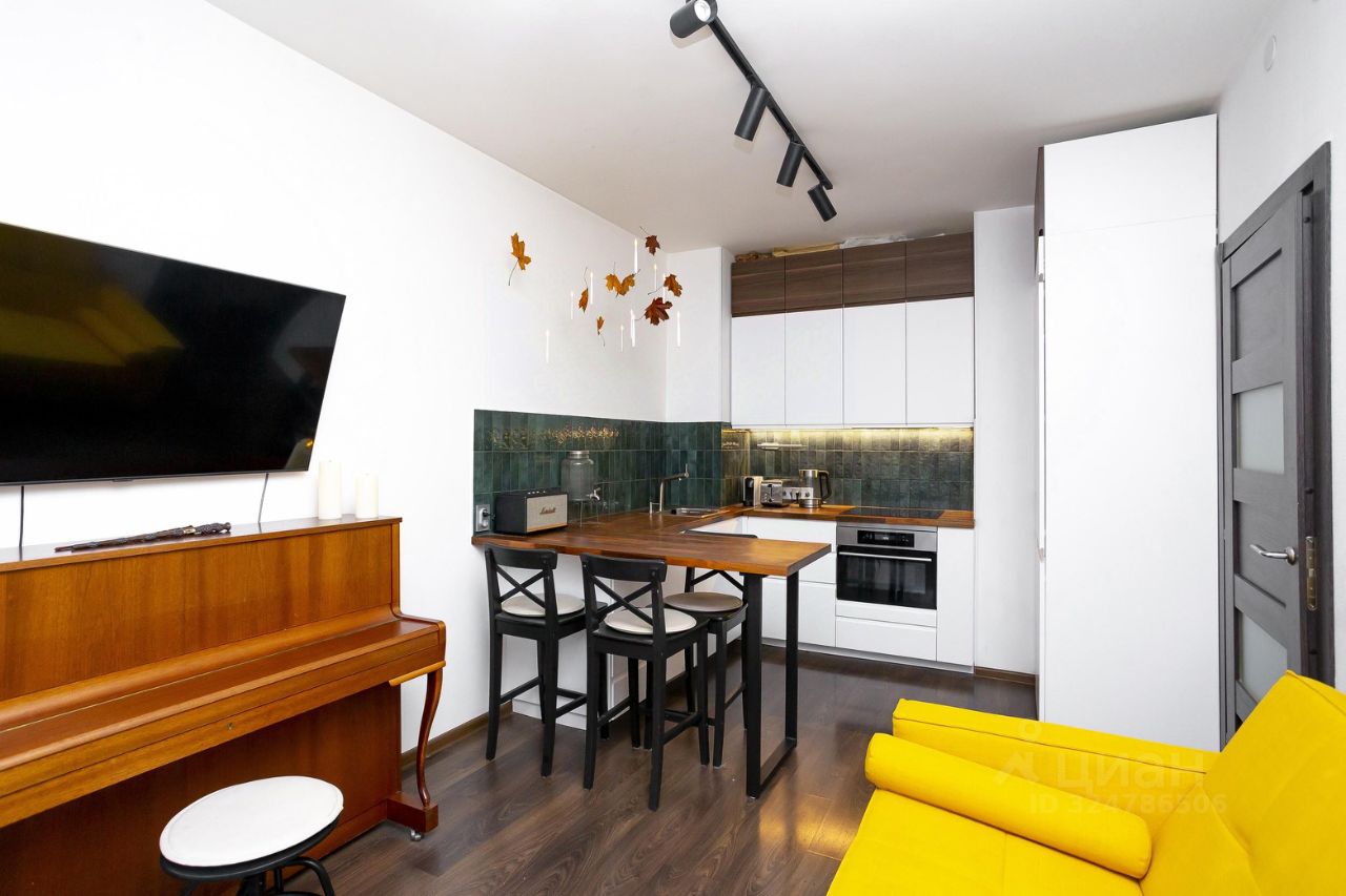 Продается стильная, светлая и уютная евродвушка в современном жилом комплексе в 15 минутах на транспорте от метро Звездная, Московская, Купчино. Квартира продается вместе со встроенной кухней с техникой. ТАКЖЕ МОЖЕМ ПРОДАТЬ МАШИНОМЕСТО В ПОДЗЕМНОМ ПАРКИНГЕ!!! Общая площадь квартиры составляет 41 кв. м, из них жилая — 15 кв. м, а просторная кухня-гостиная — 15 кв. м. укомплектована встроенной кухней отличного качества, где все продумано до мелочей. Каждая секция распланирована для удобного использования. Например, выдвижной ящик для приборов разделен на два уровня, что позволяет разместить большее количество прочих кухонных мелочей. Есть выкатная секция для бутылок, угловая секция укомплектована выкатными корзинами. Встроены большой холодильник Samsung с системой no frost, посудомоечная машина Bosh 60 см, индукционная варочная панель на 4 комфорки, духовой шкаф имеет функцию микроволновой печи. Фартук выполнен из эксклюзивной итальянской плитки. Встроен дополнительный свет, управляемый жестами. Эргономично разграничено пространство кухонной зоны и гостиной. Спальня 15 м.кв. вмещает 2-спальную кровать 160 см и два больших вместительных шкафа. Площадь позволяет кроме этого расположить рабочую поверхность у окна. Квартира расположена на 4 этаже 5-этажного монолитного дома 2020 года постройки. Высокие потолки 2.75 метра делают пространство еще более комфортным.