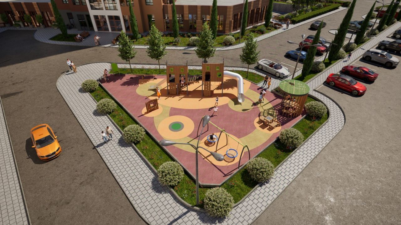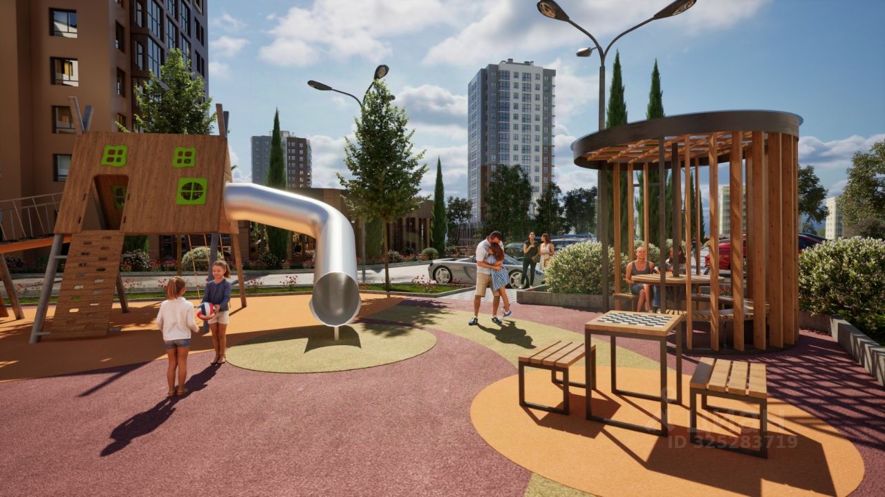 Благоустройство территории: - ландшафтный дизайн с зонами отдыха - современные детские площадки - стильные холлы с дизайнерской отделкой - система видеонаблюдения для безопасности