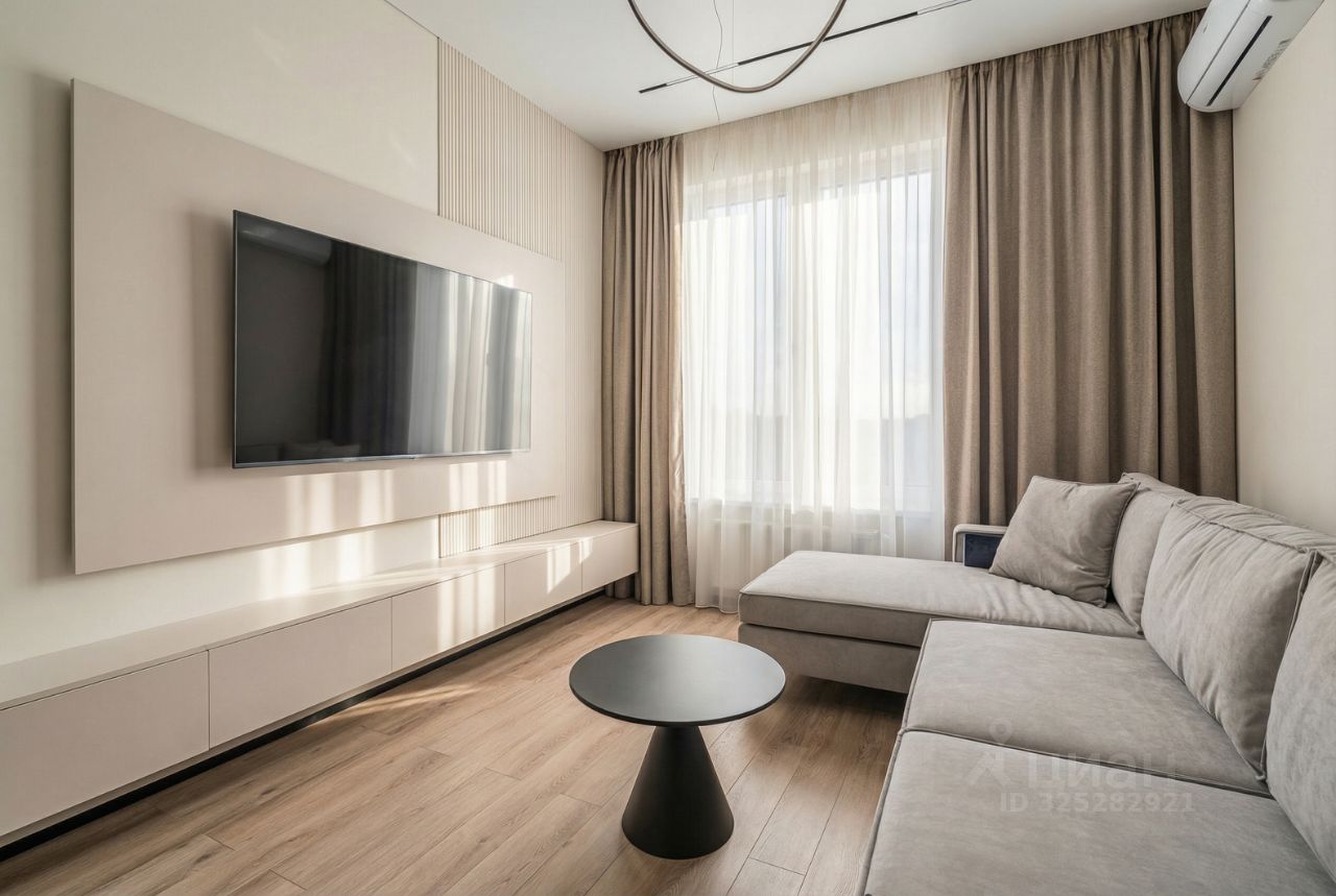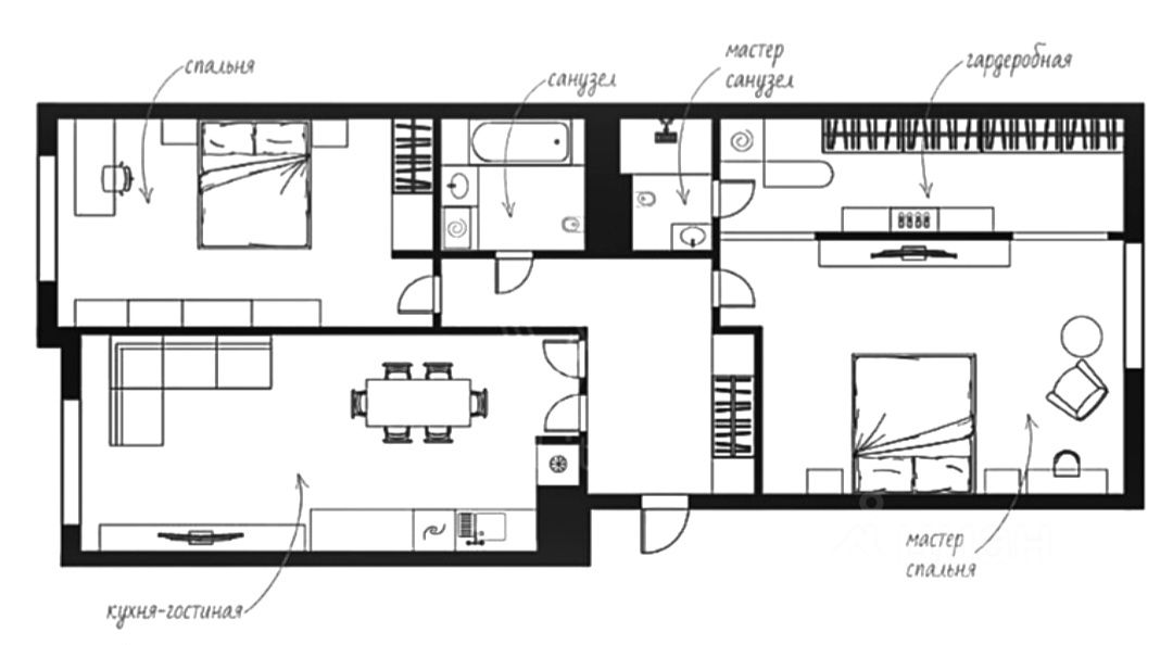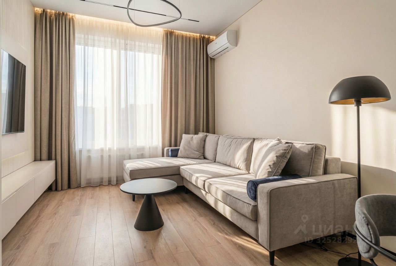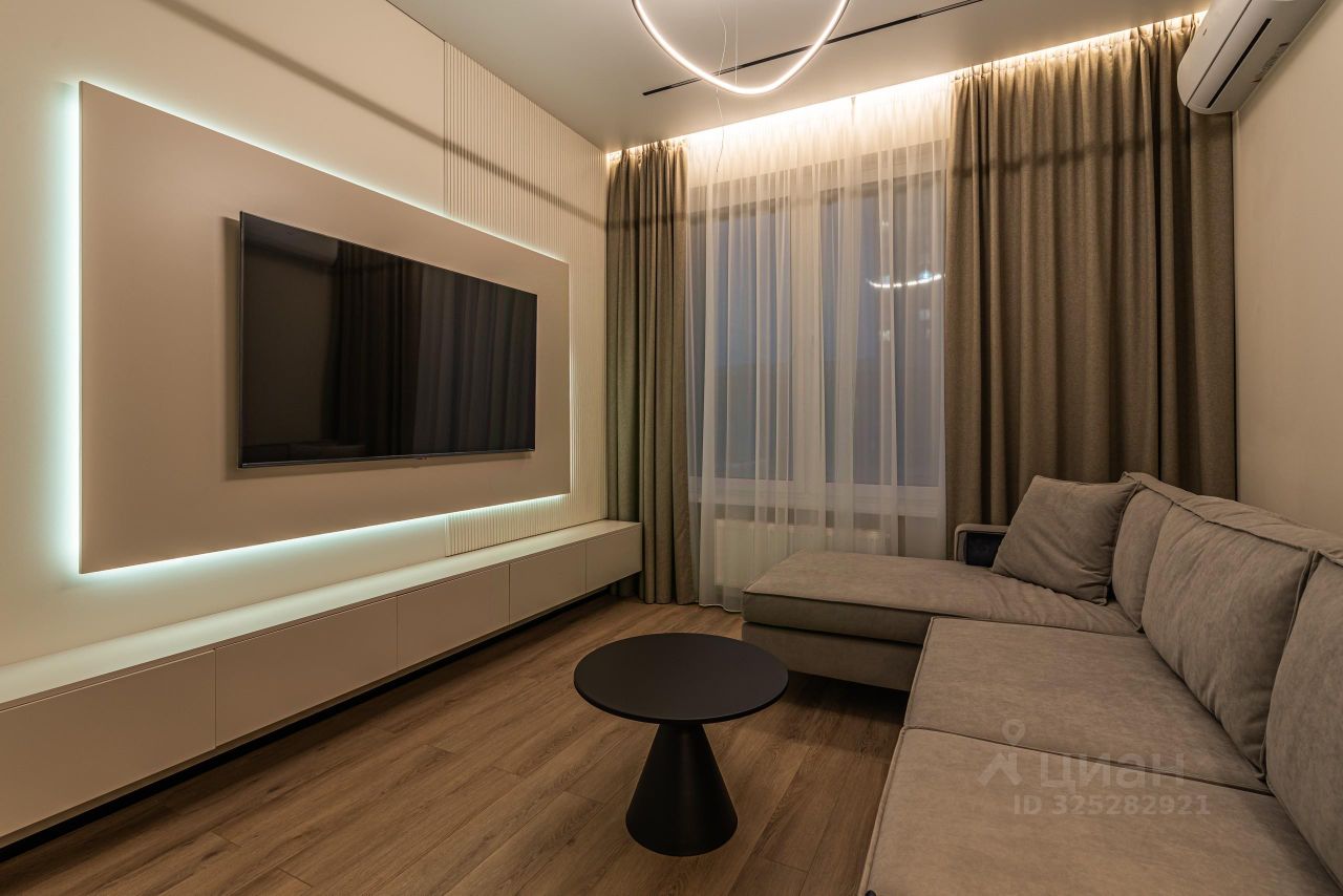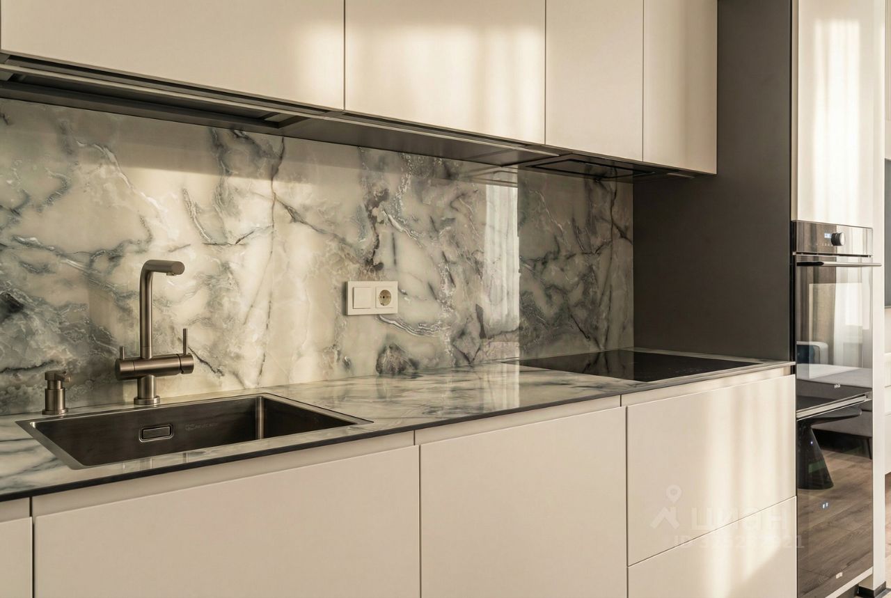 В кухне установлен кухонный гарнитур фирмы Kapittel, выполненный под заказ из Австрийских материалов, суперпрочные фасады, покрытые 7-слойной эмалью, механизмы Blum, столешница фирмы Ligron из высокотехнологичного композитного материала Compact Solid, мойка и смеситель с фильтром для питьевой воды фирмы Omoikiri (Япония), вся встроенная техника фирмы KОRTING (Германия)-встроенный холодильник, посудомоечная машина, духовой шкаф, варочная поверхность, вытяжка, винный шкаф. Диван, стол, стулья, телевизор LG, подвесная ТВ полка. В спальне: спальный гарнитур, телевизор LG. В гардеробе-встроенная гардеробная система, зеркало с подсветкой, стиральная и сушильная машины фирмы KОRTING. В коридоре: вместительный шкаф для вещей, зеркало с подсветкой, пуф.