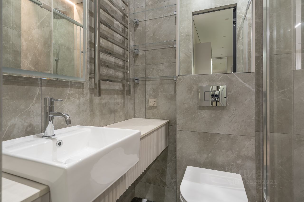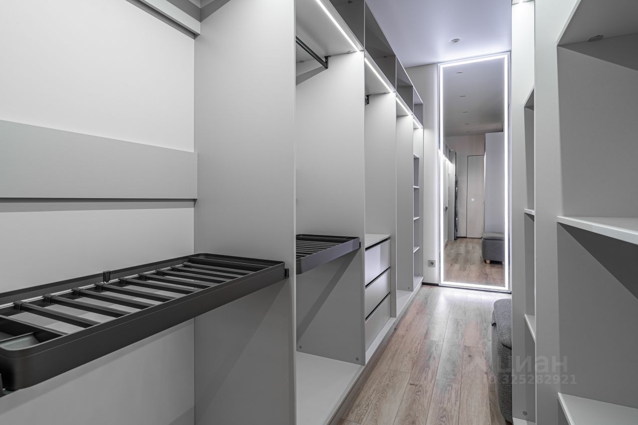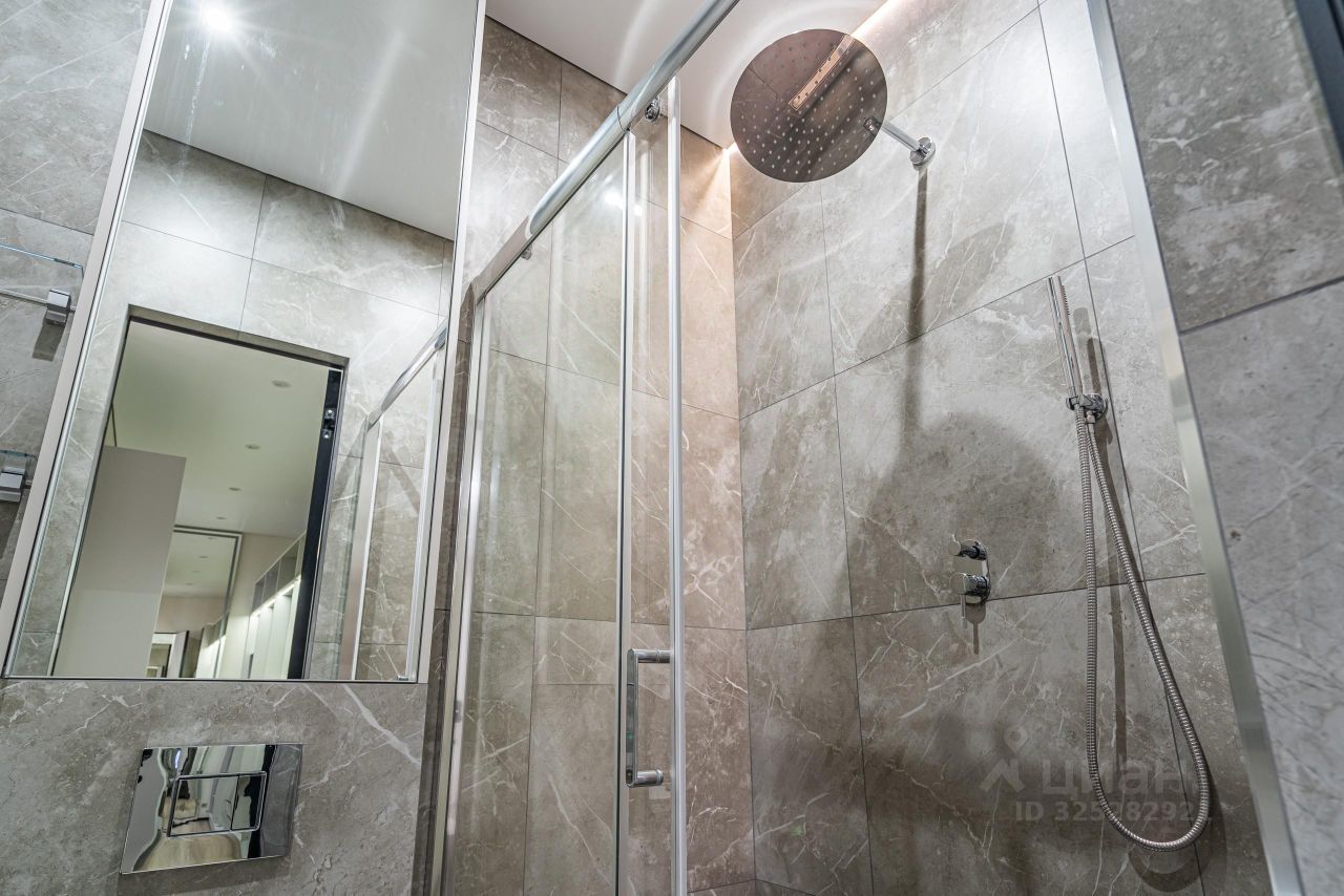 В квартире выполнен дизайнерский ремонт по индивидуальному проекту: теневые потолки с современными трековыми светильниками, на полу установлено каменно-полимерное покрытие, в ванных комнатах- керамогранит, стены выкрашены износостойкой краской с алмазной прочностью DULUX DIAMOND, установлены современные межкомнатные двери скрытого монтажа по индивидуальному заказу, стены декорированы панелями и декоративными зеркальными вставками, установлены распашные стеклянные двери в кухню-гостиную, в гардеробной установлены раздвижные стеклянные двери, выполненные под заказ. Протянут интернет кабель. Установлена система от протечек. Установлена сплит система фирмы Xaier. В Ванных комнатах: акриловая ванна Lavinia Boho One, душевые комплекты с тропическим душем Bohem Uno, гигиенический душ, смесители-производство Италия, стеклянная душевая шторка Vincea VSP (Италия), зеркала с подсветкой, подвесные тумбы с раковиной, инсталляции с подвесными унитазами.