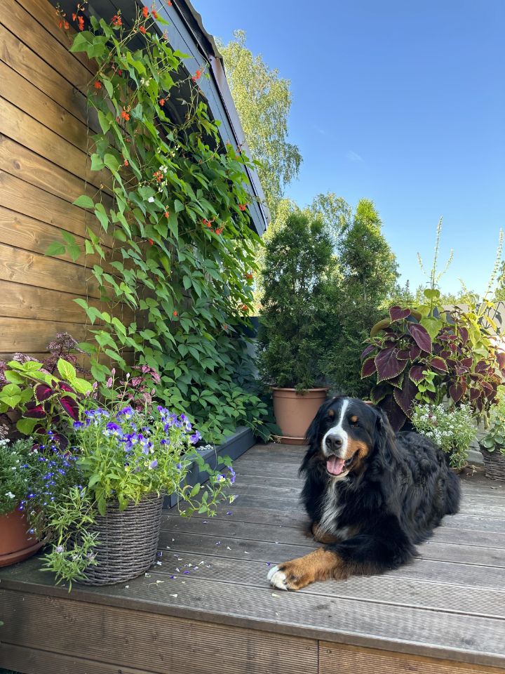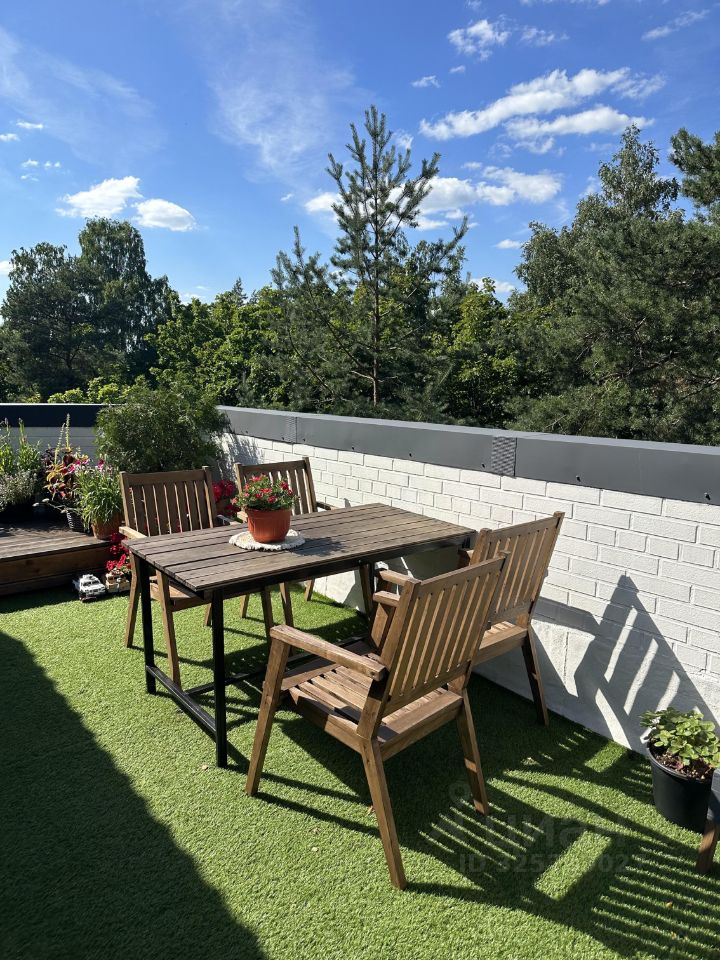 Дом имеет собственную закрытую территорию с забором и автоматическими воротами. К квартире относится парковочное место под крышей для автомобиля, велосипедов, инвентаря.