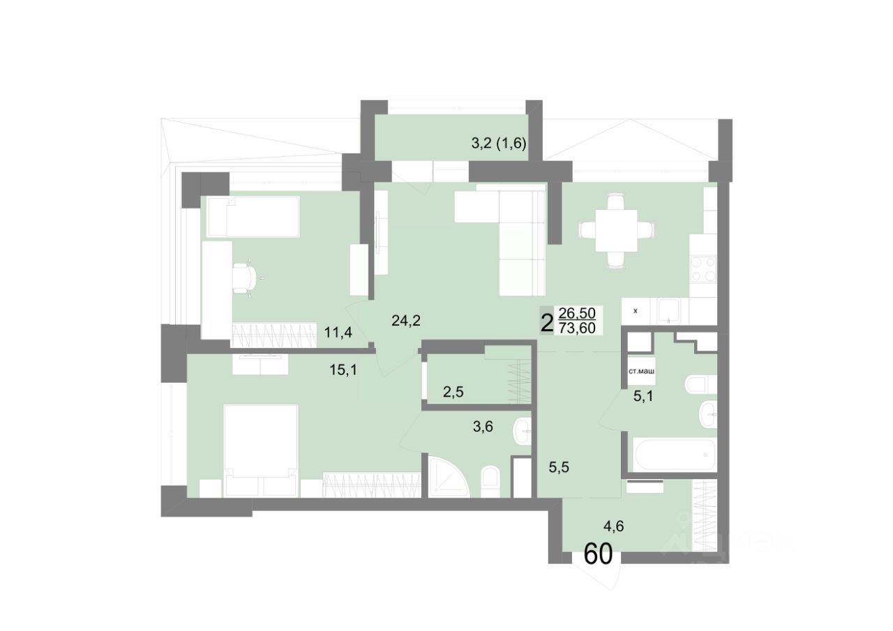 Общая площадь73,6 м2