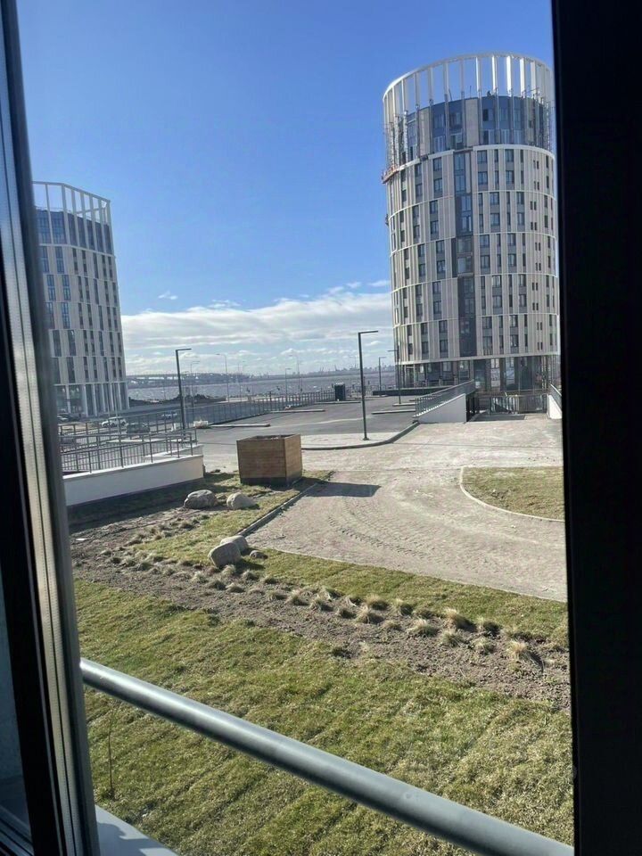 Квартира — студия от застройщика Лср. Окно- тройной стеклопакет и качественная входная дверь, обеспечивают отличную звукоизоляцию. Вид из окна на залив — фото 1.