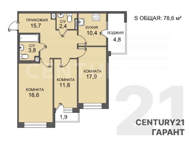 PRO КВАРТИРУ: Просторная 3-Х комнатная квартира, с вместительными комнатами (17.9+11.8+16.6) м2. Кухня 10.4 м2 объединит всех домочадцев. Просторные ДВА с/у, в одном гармонично установлена душевая кабина. На просторной площади 15.7 м2 прихожей разместится место для хранение вещей. Каждый уголок квартиры функционально используется!