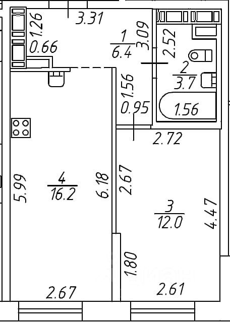 Одна из самых удачных планировок для однокомнатных квартир: в прихожей прекрасное пространство для шкафа и хранения вещей, в помещении кухни можно удобно расположитьпространство для кулинарных шедевров и в центральной зоне найдётся место для отдыха, а спальня может быть изолирована от глаз гостей.